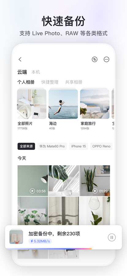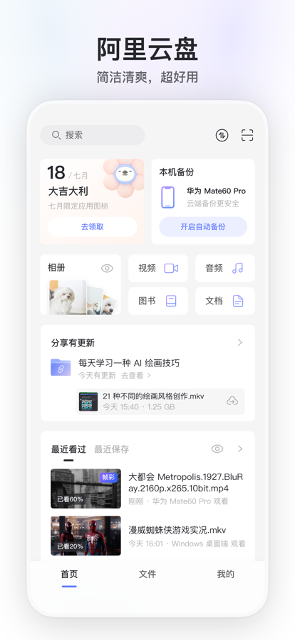 阿里云盘是一款速度快、不打扰、够安全、易于分享的网盘,由阿里巴巴集团出品。 畅快地存储到云端 ● 快到飞起,尽享极速上传下载 ● 支持大文件上传和批量上传 ● 一键开启自动备份手机相册 随时与家人朋友分享 ● 灵活设置有效期和密码 ● 查看被浏览和下载次数 ● 一键转存感兴趣的内容 在线浏览、播放和编辑 ● 原画质播放和逐帧预览 ● 轻松在线解压缩文件 ● 在线编辑 Office 文档 安全可靠的存储空间 ● 没有任何广告干扰 ● 保障个人隐私和资产安全 ● 阿里云数据、传输技术沉淀 了解更多产品进展,欢迎关注以下渠道 官微:阿里云盘 「连续包月包年超级会员说明」 1. 服务名称:阿里云盘8T超级会员连续包月连续包年 2. 价格:阿里云盘8T超级会员连续包月18元/月,连续包年168元/月 3. 购买连续包月连续包年的阿里云盘账号,会在每个月到期前24小时,自动在iTunes账户扣费并延长1个月的会员有效期。 4. 如需取消订阅,请手动打开苹果手机“设置”--> 进入“iTunes Store 与 App Store” --> 点击 “App ID”,选择“查看 App ID”,进入“账户设置”页面,点击“订阅”,选择阿里云盘会员连续包月,取消订阅即可。如未在订阅期结束的至少24小时前关闭订阅,此订阅将会自动续订。 5.连续包月连续包年用户在续费日前5天会收到站内信提醒,可在「我的」页面右上角通知中心查看 6. 阿里云盘会员自动续费协议:https://terms.alicdn.com/legal-agreement/terms/product/20220722172209928/20220722172209928.html 7. 阿里云盘隐私协议:https://www.aliyundrive.com/protocol/privacy?showTitle=false