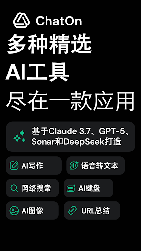 这是基于先进和创新的 GPT-5,GPT-4o,o4-mini,Sonar,Claude 3.7 和 DeepSeek-R1 技术构建的 ChatOn。这款AI聊天机器人能够达到一个全新水平的仿人类互动:当你为某一场正式会议准备演讲,苦思动人的措辞,或寻求写作方面的帮助时,这款智能机器人和AI助手都会统统帮你搞定。<br><br>ChatOn正式构建于GPT-5,GPT-4o和GPT-4之上,为用户提供市场上最优秀的中文AI聊天机器人。<br><br>图片转换器:<br>只需上传图片,选择一种风格——日本卡通、AI动作人偶制作器、毛绒玩偶或赛博朋克——即可见证奇迹。<br><br>个人AI写作工具:<br>有了这款智能聊天机器人,你在进行包括从邮件和演讲到社媒帖子和诗歌在内的任何写作项目时,都可以获得个性化协助。此外,机器人还可以为你提供后续问题的建议,帮助你让聊天继续下去,更加深入地探讨任何话题。<br><br>网络分析:<br>根据你的问题,为你在线查找最新的信息。从天气预报到最新的时尚潮流,ChatOn都能帮你搞定。<br><br>文档大师:<br>ChatOn可以为你总结、改写,甚至翻译任何文档。如果你对文件的内容有任何疑问,机器人都会为你解答。<br><br>YOUTUBE专家:<br>只需粘贴视频的网址,机器人就会总结、改写、翻译视频,或回答你关于视频内容的所有问题。<br><br>文本转图像功能:<br>ChatOn可以帮助你将你的想法转化成任意尺寸和风格的图像。<br><br>语法和拼写检查功能:<br>这个基于GPT-5,GPT-4o和GPT-4构建的ChatOn应用程序的中文版,能够分析你的文字作品,并提供建议,来帮助你改善作品。<br><br>专业的改写功能:<br>我们的 AI 聊天机器人基于 GPT-5,GPT-4o 和 GPT-4 构建,能够为你改写文本,使其更具吸引力和专业性。<br><br>社交媒体帖子创作功能:<br>这款人工智能助手将帮助你为Facebook、Twitter、Instagram或LinkedIn个人资料创作引人注意的帖子。<br><br>图像到文本转换器(OCR):<br>ChatOn会帮助你识别图像中的文本,让你可以在聊天中迅速插入文本。<br><br>文本总结功能:<br>该聊天机器人的先进算法基于 GPT-5,GPT-4o 和 GPT-4,可以通过简洁易懂的格式,识别和呈现重要信息。<br><br>文字转语音选项:<br>虽然你可以随时阅读机器人发送的信息,但ChatOn也可以为你朗读它们,让你轻松听取。<br><br>语音转文本功能:<br>用说话代替打字!<br><br>真实性润色工具:<br>无论你是在雕琢一篇社媒帖子还是商业提案,这款AI聊天机器人都可以帮助你,让你的文字充满真情实感、个性魅力,以及才华。<br><br>可靠的聊天伴侣:<br>这个AI伴侣可以为你提供与人类相似的回应,让你感觉就像在和一个老朋友聊天一样。<br><br>文本结构优化功能:<br>这款聊天机器人还具备专业的技术,可以为你整理文本,使内容更加清晰。<br><br>数学大师:<br>ChatOn以强大的、支持中文的GPT-5,GPT-4o和GPT-4人工智能技术为基础进行构建,致力于帮助你完全领会这门学科,而不仅仅是获得即时的解题答案。<br><br>专业程序员:<br>你可以使用我们的聊天机器人来编写和验证程序代码,确保代码中不存在任何可能的漏洞或错误。<br><br>说明工具:<br>该机器人基于颠覆性的 GPT-5,GPT-4o 和 GPT-4 技术构建,能够将复杂的理念拆解成简单的模块,以便你更有效地学习和记忆信息。与AI机器人进行对话,获取对法律文件与术语的简单、准确的解释说明。<br><br>简历和求职信制作功能:<br>打造令人印象深刻的简历和正规求职信,以最好的方式展示你的技能和经验。<br><br>智能的演讲稿撰写工具:<br>使用基于 GPT-5,GPT-4o 和 GPT-4 构建的 ChatOn,给你的观众留下深刻的印象。在以突破性GPT-5,GPT-4o和GPT-4技术为基础研发的、颠覆行业的聊天机器人的帮助下,传递极具感染力的、令人难忘的信息!<br><br>电子邮件生成器:<br>这个中文聊天机器人基于 GPT-5,GPT-4o 和 GPT-4 构建,可以在几秒钟内撰写出专业级别的、极具说服力的信息。<br><br>头脑风暴工具:<br>这款基于 GPT-5,GPT-4o 和 GPT-4 技术构建的 AI 写作机器人,能够为各种类型的大小项目生成创意、提供对话支持,以及激发创造力。<br><br>您可以立即开始AI聊天——这款基于GPT-5,GPT-4o和GPT-4构建的应用程序具有简单的操作界面,可以让你立刻与AI对话。只需输入你的请求,或从100多个预设的提示中选择,机器人就会替你完成枯燥繁琐的写作程序。<br><br>让我们一起开启智能AI的世界!下载基于GPT-5,GPT-4o和GPT-4构建的ChatOn应用程序中文版,让虚拟助手时刻陪伴在你身边!