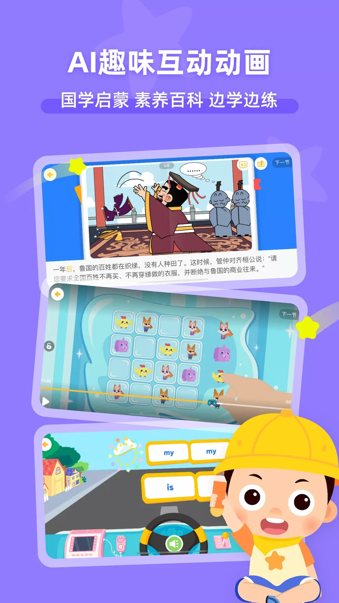 《布布拼音》是一款“情景交互+AI+科技+儿童教育”的拼音拼读。帮助孩子准确发音。通过“认、读、写、调、玩”五大环节,辅以拼读练习和儿歌拓展,在情景交互中学习拼音。 【课程内容】 83节拼音课程其中6个单韵母 + 23个声母 + 18个复韵母 + 16个整体认读音节 + 20个单元复习,涵盖“认、读、写、调、玩”四个部分”,让孩子趣味学习拼音。 63个原创拼音动画,动画展现字母字形 50个主题互动场景,情景教学趣味学习 126个真人讲解视频,讲解读写规则 100+个情景互动游戏,寓教于乐强化记忆 【产品亮点】 覆盖拼音知识点——布布拼音有83节课时,涵盖6个单韵母、23个声母、18个复韵母、16个整体认读音节以及20个单元复习。每个拼音字母有课程讲解,科学合理的安排拼音学习。 拼音读写规范——示范发音方法,解析发音难点和重点,让孩子理解发音;示范书写规范,四线三格标准书写,讲解字母的书写方向和顺序,让孩子书写标准、美观。 沉浸式互动课程,拼音学习有趣——情景式拼音教学,设置多个主题场景,包含:城市、乡间、海洋、森林、沙漠、食物、医疗等等,让枯燥的拼音学习有趣。 五大环节学拼音,课程体系科学——认拼音:拼音字母讲解 字母字形理解;读拼音:口型示范,字母跟读发声准确,AI童声识别,判断孩子发音;写拼音:真人握笔书写,字母书写笔画标准;学声调:创意动画演示,声调学习科学有趣;玩拼音:拼音游戏练习,强化训练加深记忆; 拼读训练 合理掌握拼读规则——根据拼读规则,针对性的设计趣味两拼、三拼复习游戏,让孩子合理的掌握拼读规则和拼读音节。 儿歌教学 录音跟读训练表达——20首单元儿歌涵盖了单元内新学习的拼音字母和词汇。跟读儿歌环节设置播放示范读单句儿歌和跟读单句儿歌,同时可以播放孩子跟读录音,跟儿歌示范读进行对比,及时纠正孩子发音问题、锻炼表达句子的能力。 智能学习报告——自动化数据采集,将孩子学习情况即时推送到微信,实时了解学习进度。根据知识谱图制定复习计划 【联系我们】: 布布识字客服邮箱:kf@boomgames.cn