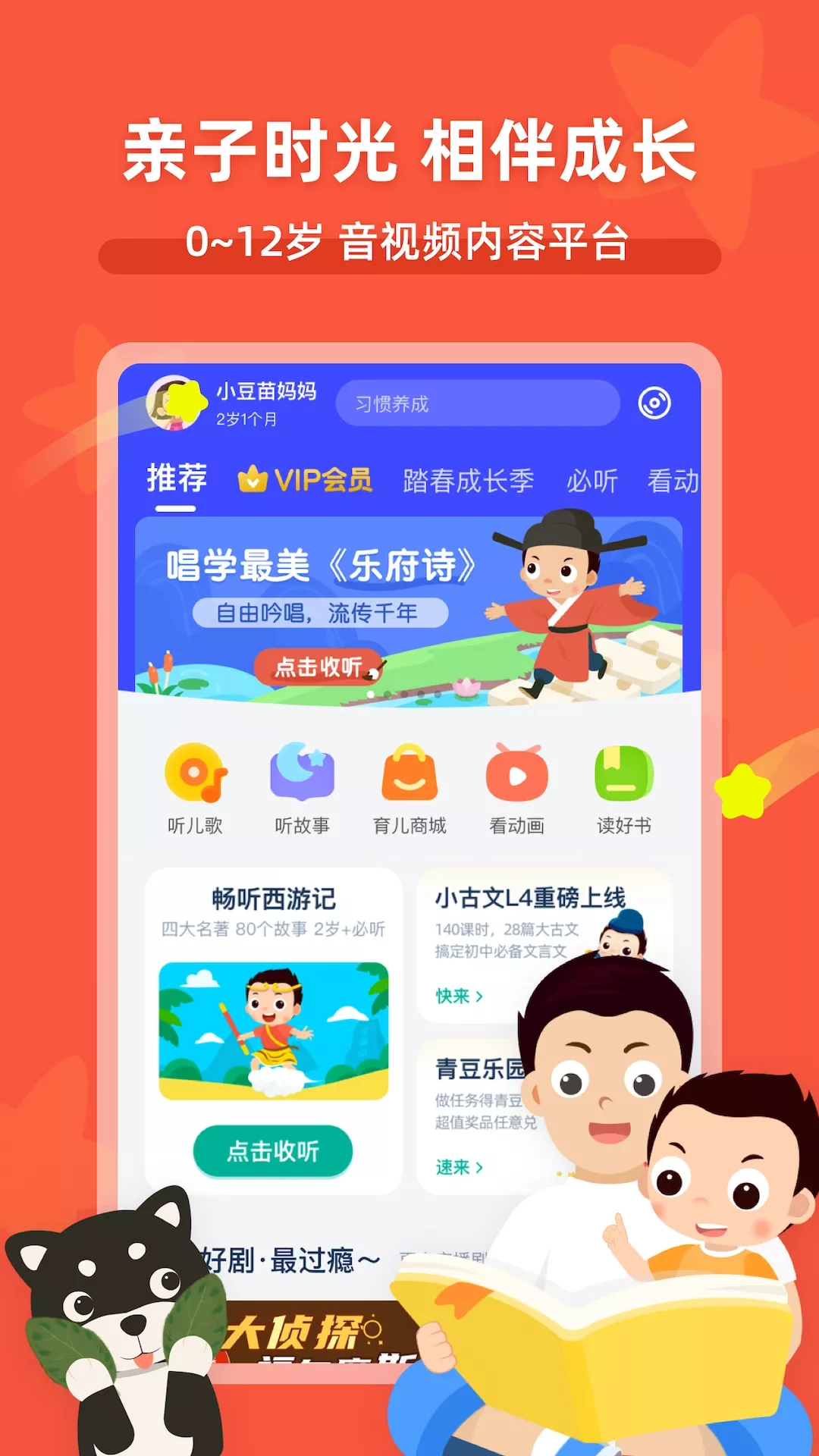 【喜马拉雅儿童】爱听故事更聪明 【喜马拉雅儿童】由喜马拉雅官方出品,专为012岁儿童精心打造。涵盖中文启蒙、英语启蒙、儿童分级阅读、科普专辑、经典IP动画、国学历史、冒险故事等儿童知识与成长板块。 与牛津大学出版社战略合作,开发独家牛津树双语精讲动画,内置超1170本牛津树线上绘本,陪伴孩子轻松完成英语启蒙与进阶。与北京师范大学独家合作研发,贴合儿童心理发展规律,精准推荐分龄内容,全方位满足孩子听、看、读等多感官成长需求。甄选专业主播及制作团队,为家长和孩子提供严选优质、安全放心、有趣有爱的高质量内容,呵护孩子好视力,培养孩子好习惯,让孩子在开心的使用过程中有成长,在内容熏听中收获探索世界的好奇心与勇气! ~~~~~~产品特色~~~~~~ ● 内容丰富:120万+集音频故事,帮助孩子在故事中收获成长 ● 优质版权:严选精品儿童IP,专为儿童定制,用故事点亮童年 ● 精准分龄计划:0~12岁儿童成长方案,陪伴孩子每一岁的成长关键期 ● 一键哄睡:一键播放晚安好故事,用好声音伴孩子入眠 ● 纯净无忧:纯净内容无广告,守护孩子身心健康,孩子爱听,家长放心 ~~~~~~网罗全球优质内容~~~~~~ 智能分龄推荐宝贝喜欢的益智故事、名著、科普、有声动画、侦探冒险、儿歌、国学历史等内容,帮助孩子在故事熏听中培养好品格与好习惯—— √ 听故事,养成高情商,提升词汇量:《不一样的卡梅拉》《米小圈上学记》《神奇校车》 √ 科普博物,开启对世界的探索之旅:《动物的100个秘密》《好奇心出发》《十万个为什么》 √ 听动画,不伤眼,保护视力:《奥特曼》《小马宝莉》《小猪佩奇》《海底小纵队》 √ 影响孩子一生的经典名著:《小王子》《西游记少儿版》《海底两万里》《老人与海》 √ 侦探冒险,放飞孩子想象力:《神探迈克狐》《猫小九历险记》《口袋里的超级坦克》 √ 听国学历史,感受文化熏陶:《唐诗三百首》《婷婷唱古文》 《讲给儿童的五千年中国历史》 √ 哄睡儿歌,陪孩子度过有爱的童年:《宝宝巴士儿歌》《贝乐虎儿歌》《火火兔儿歌》 √ 英语启蒙,培养纯正英语发音,助力儿童全面发展:《牛津阅读树》分级阅读
