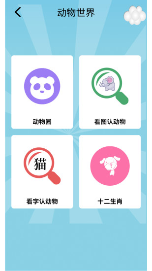 一款儿童学习、儿童教育的应用,包括唐诗、三字经、百家姓、数学、英语、语文、音乐、动物、水果等内容 产品主要功能: 1、国学,三字经、弟子规、千字文、百家姓、唐诗等经典传统国学内容; 2、数学世界,包括学数字、数数、加减乘除四则计算等小学数学的重要知识; 3、英语世界,包括26个英文字母的学习、日常生活英语单词的学习等; 4、语文世界,包括韵母、声母、拼音、写字等小学语文基础知识的学习; 5、动物世界,认识学习常见的动物以及了解对应动物的叫声; 6、水果世界,认识生活中常见的水果; 7、蔬菜世界,认识日常生活中常见的蔬菜; 8、音乐世界,包括学习基本的音符、认识乐器、学唱儿歌等; 9、形色世界,学习认知生活中各种形状和各种颜色; 10、快乐世界,打地鼠、小猪佩奇学拼图,让孩子在学习之余休息放松;