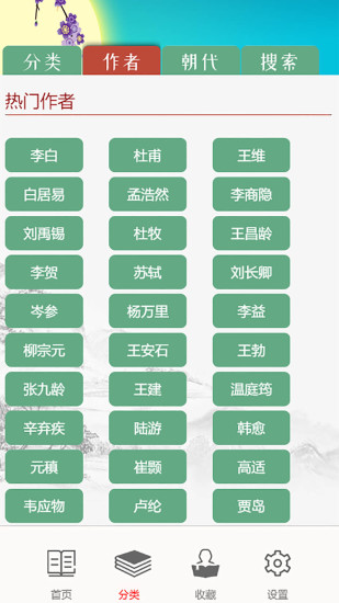 国学经典,收录小初课内外读物古诗词、唐诗、宋词等。 集合朗读、滚动字幕、拼音、韵译、点评、翻译的古诗APP,收录500+唐诗、宋词、元曲等。 主要特色: 1、古诗全面:包含先秦、唐朝、宋代、元代等各朝代古诗词; 2、朗读+拼音+滚动字幕,有暂停键可以跟读; 3、科学分类:按作者、朝代、诗词类别等分类,诗词类别包括:山水景致、田园生活、边塞征战、游子思乡、赠别亲友、咏物抒情、怀古喻今、人物叙事等; 4、诗词搜索:比如李白的静夜思,可以搜李白、静夜思、静等关键字; 5、收藏功能:遇到喜欢的古诗,可以把古诗词加入到收藏列表; 6、诗词有翻译、点评、赏析模块;