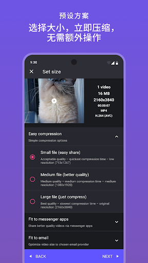 <b>支持的视频格式<br><br>MP4,MKV,AVI,3GP,FLV,MTS,MPEG,MPG,WMV,M4V,MOV,VOB<br><br><b>主要功能<br><br>by通过保持原始质量来压缩未压缩的视频。<br><br>from从具有不同质量和尺寸设置的预定义多个压缩配置文件中进行选择。<br><br>🎬将视频压缩为手动输入的大小。<br><br>🎬在压缩过程开始之前,显示所选压缩设置的短时间预览。帮助用户事先了解压缩质量。<br><br>🎬将多个视频放入队列,以批处理模式对其进行压缩。<br><br>X在X264和X265(HEVC)编解码器之间进行选择以进行压缩。 HEVC编解码器比X264编解码器提供更多的压缩。但是就压缩速度而言,X264比X265快得多。<br><br>🎬选择压缩过程速度。速度越高,压缩的视频大小越大。<br><br>🎬选择自定义分辨率。<br><br>by通过降低分辨率和视频比特率来压缩视频。在此选项中,用户可以在压缩之前查看估计的压缩视频大小。这不会保留原始质量。<br><br>by比较压缩和原始视频,方法是在同一屏幕上同时播放它们。<br><br>compression从应用程序压缩后删除压缩或原始文件。<br><br>s缩小视频大小,缩小视频,节省并清除设备的存储空间。<br><br>🎬高质量视频压缩和低质量视频压缩。<br><br>🎬将视频转换为MP4,MKV,AVI,3GP,FLV,MTS,M4V,MOV格式。(PRO Feature)<br><br>🎬从MP4,MKV,AVI,3GP,FLV,MTS,MPEG,MPG,WMV,M4V,MOV,VOB格式转换视频。<br><br>🎬播放压缩和转换后的视频。<br><br>🎬分享压缩,转换和缩小尺寸的视频。<br><br>视频压缩器-Compact Video应用程序可以压缩和转换几乎任何格式的视频。它为用户提供默认的压缩/预设配置文件。用户可以选择所需的压缩质量,压缩速度,视频分辨率,比特率等。此外,该压缩器和转换器还允许用户输入所需的压缩视频大小,然后将视频压缩为该大小。您还可以通过排队多个视频以批处理模式压缩视频。<br><br>该视频压缩器可以使用X264和X265(HEVC)编解码器压缩未压缩的视频而不会降低质量。它还可以通过降低质量(分辨率,比特率)来压缩压缩的视频。该视频压缩器通过定制视频的分辨率和比特率,为用户提供了一种透明灵活的方式来选择压缩级别。它显示了压缩开始之前压缩视频的估计大小。这可以帮助您确定要以何种压缩质量节省多少空间。它支持多种视频格式。<br><br>这是市场上最好的视频压缩器和转换器应用程序,它提供用于压缩视频的所有可能的设置。</b></b>