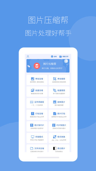 在日常的工作生活中,您是否都会遇到这样或那样的图片处理问题。例如我们报名一些职业考试或办理政务相关的业务时,往往提供的材料当中就会要求特定大小或尺寸的图片或PDF格式,或因大量的高质量图片占用了手机的储存空间。 这种情况下,图片压缩帮可以帮你解决所有的图片问题:图片批量压缩、裁剪、证件照裁剪、图片旋转、PDF转换、图片格式互转、黑白图片转化。 它的特色功能有: - 支持批量压缩相册里面的照片,并支持打包zip。 - 支持批量裁剪照片,支持智能选区。 - 支持证件照尺寸裁剪(300dpi),大小一、二寸轻松裁剪。 - 支持多张图片转为单个pdf、或PDF页转为图片。 - 支持文件夹压缩,一键选取压缩整个文件夹的图片。 - 支持电脑互传,输入ip地址,轻松电脑上互传手机的图片。 - 支持旋转图片、一键转化为黑白图片。 - 支持jpg、png、webp格式间的转换 - 支持终端模式,电脑也可以操作图片处理。