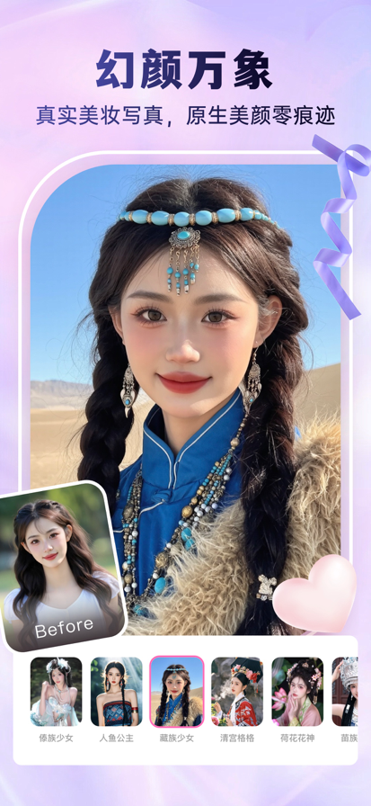 美容相机-AI美颜特效 —— 让每一张照片都成为艺术杰作 专为追求精致美感与创意表达的你量身打造!《美容相机-AI美颜特效》以尖端人工智能技术为核心,集图片编辑、智能美化、艺术创作于一体,无论是日常自拍、风景记录,还是创意设计,都能一键解锁惊艳效果,让你的每一张照片都独具风格。 核心功能,玩转图片魔法 *精致美颜与滤镜:AI 智能识别面部轮廓,自然磨皮、细腻瘦脸,保留真实质感;涵盖复古、清新、电影感等数十种滤镜,一键切换氛围,让照片自带高级感。 *图片编辑全能工具箱:裁剪、旋转、调色等基础功能一应俱全,更支持局部细节修饰,轻松搞定图片瑕疵,让画面更精致。 *图片画质修复:模糊照片一键变清晰,老照片修复、去除噪点、智能除雾,还原画面细节,拯救废片神器。 *智能无痕处理:AI 精准识别并去除水印、路人、杂物,不留痕迹,让画面干净纯粹,专注主体表达。 *智能写真与虚拟换装:上传照片即可生成杂志级写真,妆容、姿态自然融合;虚拟换装功能覆盖多种风格,日常、通勤、礼服随心换,轻松试穿不费力。 *智能扩图:突破画面边界,AI 自动补全边缘场景,横版变竖版、构图调整更灵活,适配不同展示场景。 图片艺术生成:一键将照片转化为漫画、油画、素描等艺术风格,更支持自定义创作参数,让普通照片秒变艺术大作,释放你的创意潜能。 自动续费服务声明 付款:用户确认购买后,费用将从 iTunes 账户中扣除; 取消续订:如需取消,需在当前订阅周期到期前 24 小时,通过 iTunes/Apple ID 设置管理关闭自动续费,关闭后不再扣费; 续费:苹果 iTunes 账户将在到期前 24 小时内自动扣费,扣费成功后订阅周期顺延一个周期。 隐私政策:https://docs.qq.com/doc/p/9ddc1be3dc4ecd422c429af2938aca9e72c4bc2c 使用条款:https://docs.qq.com/doc/p/5ed29cb6c5bd23b68a0cb8354139340cf6ff4c22 用 AI 赋能创意,让每一张照片都超越期待 ——《美容相机-AI美颜特效》,你的专属智能美学助手。