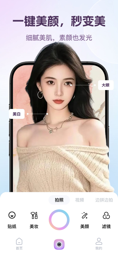 这款全能的最美相机专为追求精致与创意的你而设计,集自拍、拼图、修图于一体,让照片焕发惊艳魅力,让你轻松展现更美的自己。 【人像美颜】 一键轻松美颜,肤色自然细腻 【图片优化】 一键变清晰、去雾和增强色彩,让照片更生动 【最美相机】 多种美颜滤镜供你选择,拍出最美的你 【拼图创作】 多种模板供你选择,打造独特的照片拼贴 【AI换脸】 趣味换脸,一键变身不同角色,体验百变风格。 【AI生图】 上传图片,AI智能生成高质量创意画作 【智能换妆】 多种妆容风格随心尝试,轻松打造精美妆感 自动续费声明: 1、付款:用户确认购买并付款后计入iTunes账户; 2、取消续订:如需取消续订,请在当前订阅周期到期前24小时以前,手动在iTunes/Apple ID设置管理中关闭自动续费功能,取消后不再扣费; 3、续费:苹果iTunes账户会在到期前24小时内扣费,扣费成功后订阅周期顺延一个订阅周期。 隐私政策:https://docs.qq.com/doc/p/03aebd0c05837df4a94b09871523bcfccb8451c6 使用条款:https://docs.qq.com/doc/p/c852c08f22531e3e3716adb6a5d7115e174c02c0