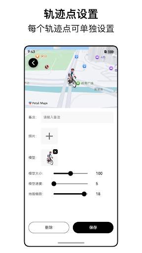 “分享轨迹” 可以根据用户需要记录并分享旅行线路,车辆行驶路线,运动轨迹等信息: <br><br> 她小巧精干,操作简单。<br><br> 她是一个与轨迹,轨迹记录,轨迹导航,足迹,GPS轨迹,地图,骑行,户外,徒步,郊游,步行,跑步,健走,自驾,登山,旅行等活动相关的工具。<br><br> 地图标注功能丰富,可以通过语音,文字,视频,照片以及涂鸦照片标注地图上的任意地点。<br> <br> 导入/导出的轨迹数据格式丰富,兼容各种地图软件。<br> <br> 自适应各种轨迹类型(骑行,自驾,徒步等)及切换,省去了事先确定运动类型的麻烦。<br><br> 自动对轨迹点做非常严谨地纠偏处理,保证轨迹的精确性。<br><br> “分享轨迹” 可以将视频,照片和轨迹数据紧密结合,给用户提供不一样的运动和出行体验:<br><br> 可以将手机相册中视频,照片以及语音包含到轨迹数据中,一键分享给其他朋友。<br><br> 可以一键载入用户在轨迹记录期间拍摄的视频/照片。依据拍摄的地理位置,视频/照片将自动地显示在包含轨迹的地图上。<br><br> 可以将手机相册中的照片/视频以及录制的语音标注到地图上,形成对轨迹的丰富注解。<br> <br> 如果您拥有“分享轨迹”:<br><br> 您可以用Google Earth软件在三维场景中浏览“分享轨迹”记录的旅行线路,车辆行驶路线和运动轨迹,也可以通过邮件,微信和QQ等即时通讯工具将旅行线路,车辆行驶路线,运动轨迹等信息发送到朋友的手机上,还可以分享到微博和微信中。<br><br> 您可以将手机相册中视频,照片以及语音包含到轨迹数据中,一键分享给其他朋友。您的朋友只需将您分享的轨迹文件导入到“分享轨迹”中,就可以在地图上欣赏您的分享的视频和照片了。<br><br> 您可以随时在地图上欣赏每一次出行拍摄的视频和照片,重温美好的回忆。<br><br> 您可以在跑步或者户外旅行时,实时查看您的高度,速度和方向等信息。 <br><br> 您可以制作信息丰富的路书(包含视频,照片,语音,轨迹等),提供给您的朋友。<br><br> 您可以通过轨迹导航功能,获取到目的地的实时指引。