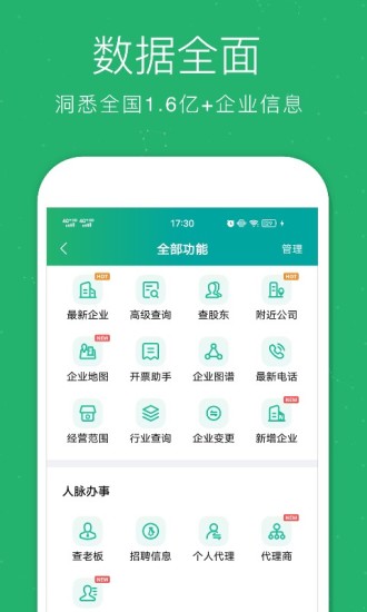 企业查询用企查猫! 查企业、查老板、查电话,随时随地,想查就查! 企查猫是一款可以快速天眼查询企业和企业老板工商背景信息的强大企业查询工具。覆盖全国1.6亿+企业信息,为用户提供全面有效的企业大数据查询。只要输入需要检索的企业名或人名,就可快速查到企业的工商信息、联系方式、股东高管、股权结构、对外投资、商标专利、司法诉讼、信用状况、关系图谱、发票查询、变更状况、招聘信息、行政处罚等。 企查猫所有信息全部来源于政府公示信息,权威可信。企查猫自动梳理企业信息,企查查一目了然,省时省力。企查猫与工商局、人民法院、商标局、专利局、版权局等网站同步对接,高效聚合各类信息,用户毫秒级别的速度可进行近百个维度的搜索。 企查猫在银行、证券、投资机构、国企部门、律师、媒体、记者等行业拥有众多忠实的粉丝。金融行业可以用于风险监控,国企部门可以用于招商引资,律师可以用于尽职调查,媒体可以深挖企业真相,采购可以寻找优质供应商,求职者可以了解雇主背景,销售可以发现更多销售机会等等,是各界人士必备的企业信息查询利器。