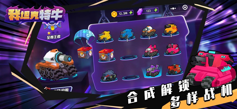 融合坦克之力,点燃国风热血!最新版本,经典的三国传奇与现代坦克科技完美交织,带来全新的坦克对战体验。 小时候大家玩过的坦克大战,现在炫酷升级为3D版的《坦克无敌》! 在这款游戏中,不仅能重温童年双人坦克大战的乐趣,还能组队挑战BOSS,多人实时PK! 【实时PK,胜者为王】 游戏提供各类实时竞技玩法,你可以进行单兵作战或与好友组队对抗。这将让你尽情展示操作技巧,大放光彩。 【路遇机关,策略制胜】 闯关模式中,你将面对丰富多样的地形和机关元素,通过巧妙的走位和制定关卡策略,体验探索和挑战的乐趣。 【风骚走位,极限生存】 面对各种形式多样且技能各异的BOSS,你需要在弹幕密集的压力下进行走位操作,给予BOSS致命一击,并获得满满的成就感。 【随机组合,无限可能】 竞技场模式采用Roguelike玩法,每打过一层就可以选择一个buff,不同的buff组合将带来不同的爽快感。多个玩法流派如子弹流、飞机流、道具流、火圈流、战吼流、激励流等,给你带来意想不到的惊喜和畅爽体验。 【呼朋唤友,并肩作战】 游戏中有多种组队玩法,包括虚空征途、boss特训和悬赏令等,需要与好友一起并肩作战,共同体验组队战斗的乐趣。 此外,游戏还提供了收集和培养各具特色的坦克的功能,大家可以解锁收集不同类型的坦克,并进行升级和培养,获得丰富多彩的战斗操作体验。 《坦克无敌》为大家提供了丰富多样的游戏内容和福利,欢迎你加入成为战斗场上的新星!快来挑战吧!