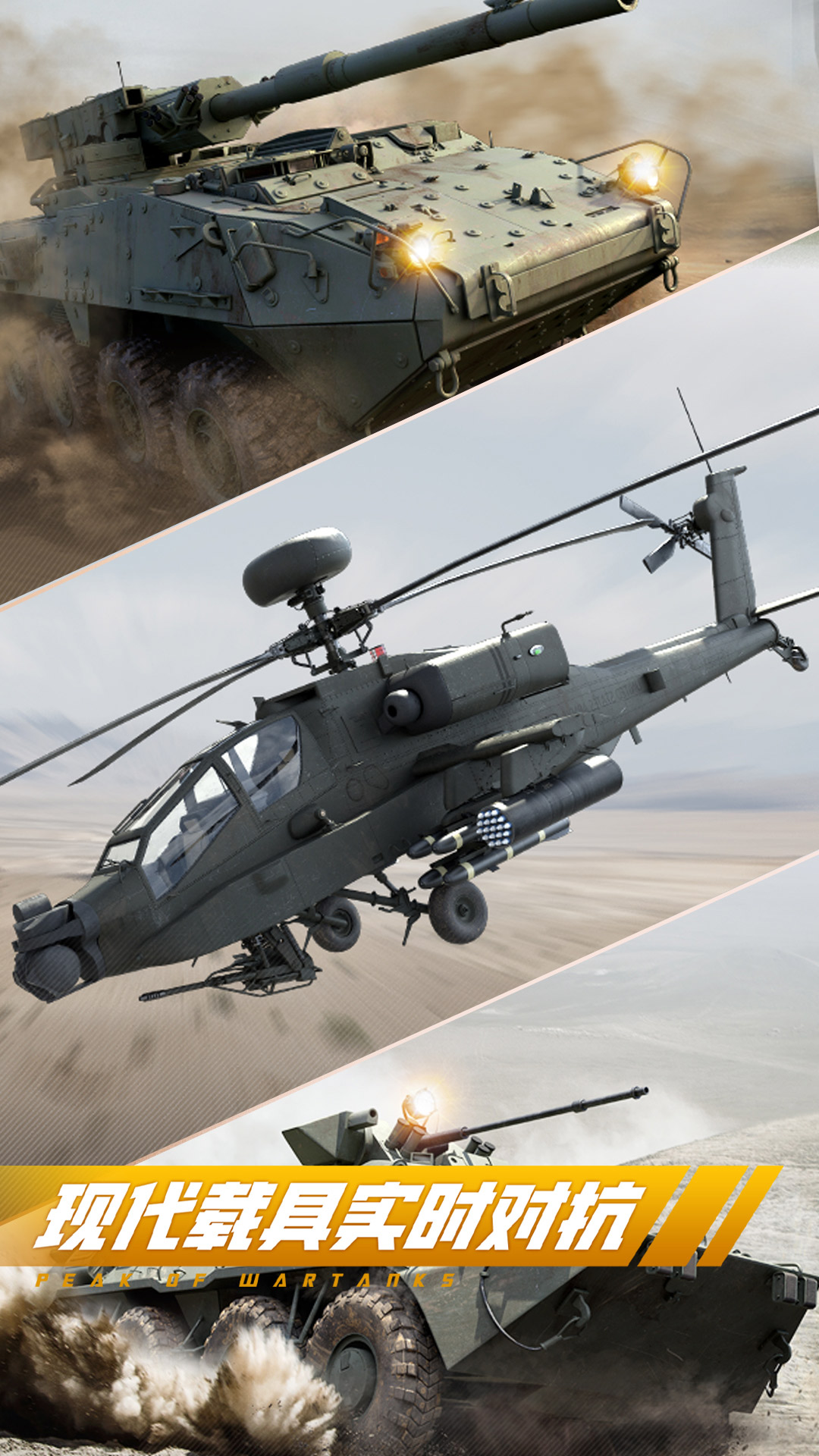 现代战争,实时竞技!颠覆级陆空对战竞技手游《巅峰坦克:装甲战歌》是一款主打现代战争题材的陆空载具射击手游,全球超过百款的现代坦克、装甲车、武装直升机、反坦克歼击炮等武器载具可供玩家自由选择,在一场12v12的真人实时对战中,感受最直观震撼的战争体验。满足你对战争的一些想象!