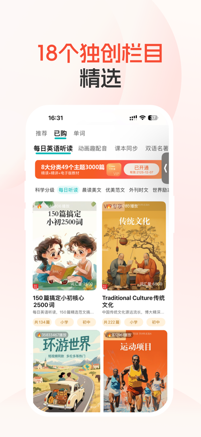 豆豆藤英语APP是豆豆藤国际英语体系的配套学习系统,通过视频更好的帮助孩子理解教材内容,通过音频、核心句型和关键词汇的学习训练,让孩子能够持续浸泡在纯英文的语境中,持续不间断的接触,像学习母语一样,自然输出,流利表达。