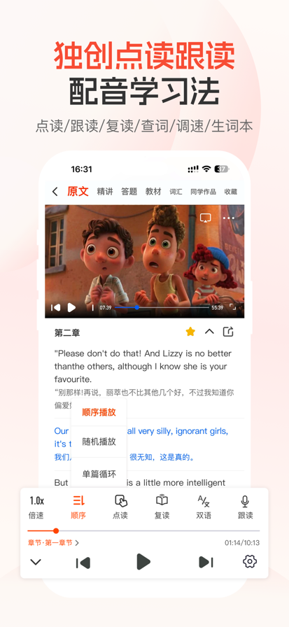 世界上首个人工智能口语发音训练软件。通过将您的发音与标准英语对比, 可以对每个音节作出评分,即使在没有外教的情况下,通过该软件的语音反馈和纠正,您的口语可以变得如外国人一样。 英语100为英语学习者提供精彩广泛的课程, 被广大英语爱好者评为最有趣的发音纠正软件, 使快乐学习成为现实。利用该软件, 哪怕每天只抽10分钟练习英语, 坚持3个月后, 相信您的英语将如native speaker一样流利。