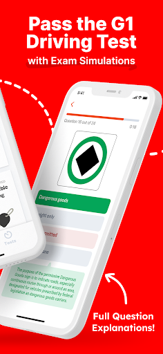 无需花一分钱即可准备安大略省 G1 驾驶考试!隆重推出 G1 Driving Test Canada,这款免费应用程序可确保您一次成功。凭借其用户友好的界面和全面的功能,掌握道路规则从未如此简单。通过使用此应用程序,您将朝着成为加拿大知识渊博且负责任的驾驶员迈出重要一步。请放心,我们的内容已更新,以反映最新的 2024 年 G1 测试要求,确保您为成功做好准备。<br><br>主要特征:<br><br>* 完全免费:没有隐藏费用或订阅费。无需花费一分钱即可访问所有功能和内容。<br><br>* 无限次模拟测试:通过无限次模拟测试进行多次练习,确保您为真正的考试做好充分准备。<br><br>* 渐进式学习:深入学习 30 个基于级别的练习集,旨在逐步增加您的知识和信心。<br><br>* 基于游戏的学习:通过专注于掌握交通标志和规则的基于游戏的学习模块,使学习变得有趣和互动。<br><br>* 真实的用户界面:通过模拟实际 G1 驾驶测试的真实用户界面体验真实的测试环境。<br><br>* 深色模式:白天或晚上的任何时间都可以舒适地学习,可以选择切换到深色模式以减轻眼睛疲劳。<br><br>* 保证成功:您通过 G1 驾驶考试所需的每一个问题都包含在应用程序中,确保您成功,无需任何额外费用。