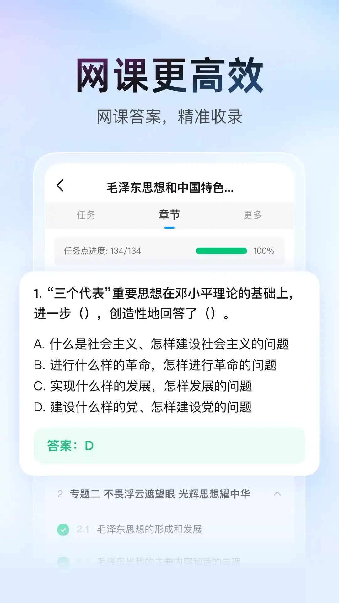 大学搜题酱 App是一款大学生专属的AI学习助手。网课答案、教材习题、答案解析一拍即出,搜题不限次。现已经接入DeepSeek,豆包,文心一言,kimi等大模型,助力大学生的学习更上一层楼。搜题酱涵盖千所高校期末真题,收录四六级考研考公等各类试题资料。有了搜题酱,大学难题从未如此简单! 【大学搜题酱功能】 1、AI问答:生活百科,学习难题,工作帮手,有问就有答。 2、拍搜答疑:遇到难题怎么办?用拍搜答疑功能,一拍即出答案,解题又快又准! 3、文字搜索:不方便拍照不要紧!使用文字搜索,题目一键复制粘贴,搜索更便捷! 4、找答案浮窗:手机在线答题如何查答案?开启找答案浮窗,截屏搜题更方便! 5、资料库:大学考试不要慌!来大学资料库,各类考试真题、复习资料免费下载。 6、扫码搜书:专业课后习题不会答?扫条形码即出整本教材书籍,遇到难题无压力。 7、收藏:一键收藏所需教材网课,查找更方便,使用更简单。 【大学搜题酱特点】 1、题目全:收录大学各专业教材、网课、进阶考试的题目答案,海量优质题库免费搜。 2、搜题快:支持搜索答疑、文字搜索、扫码搜书等多种搜索方式,一拍一扫,即出答案!