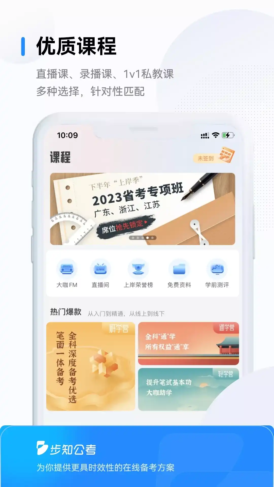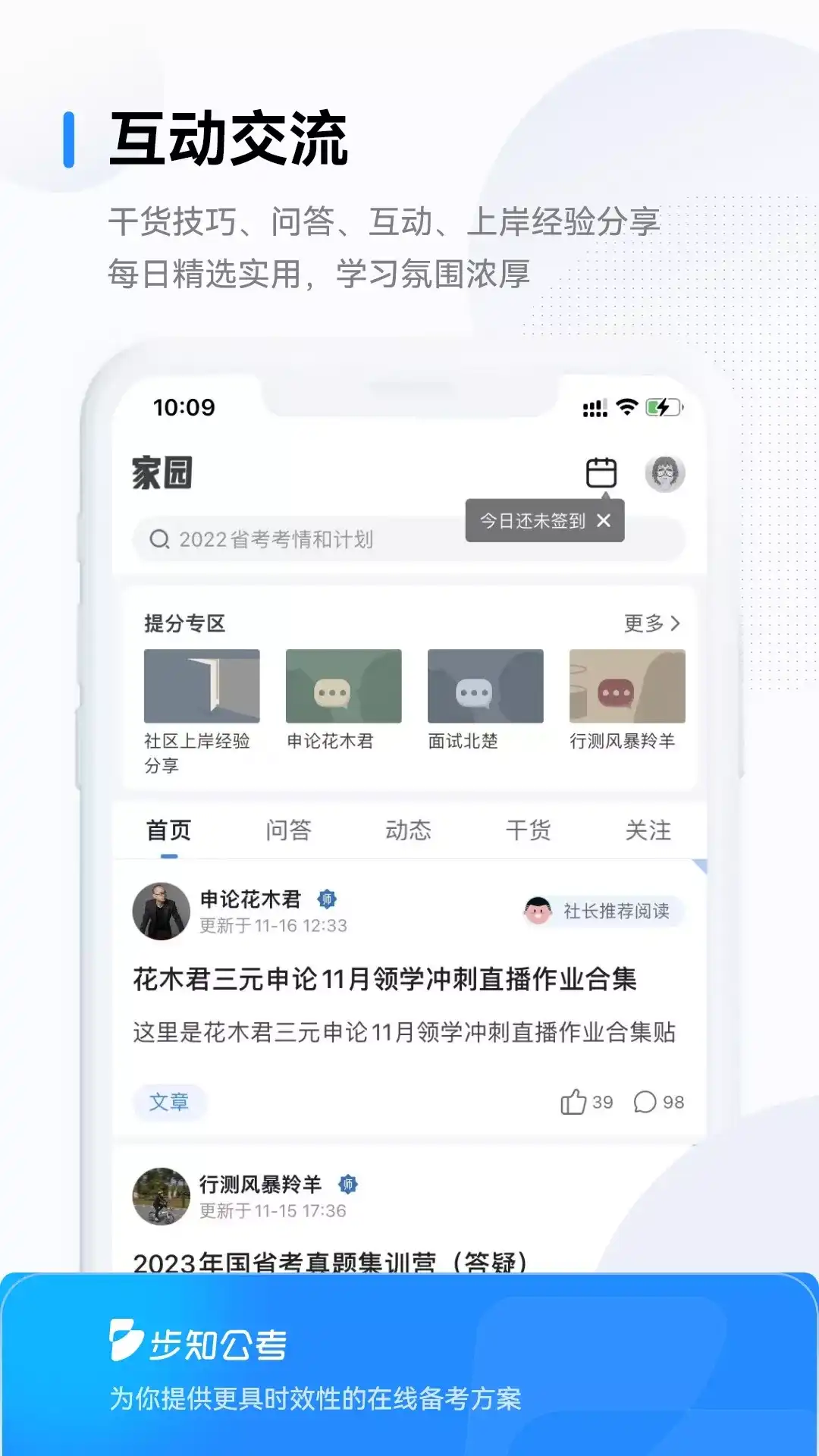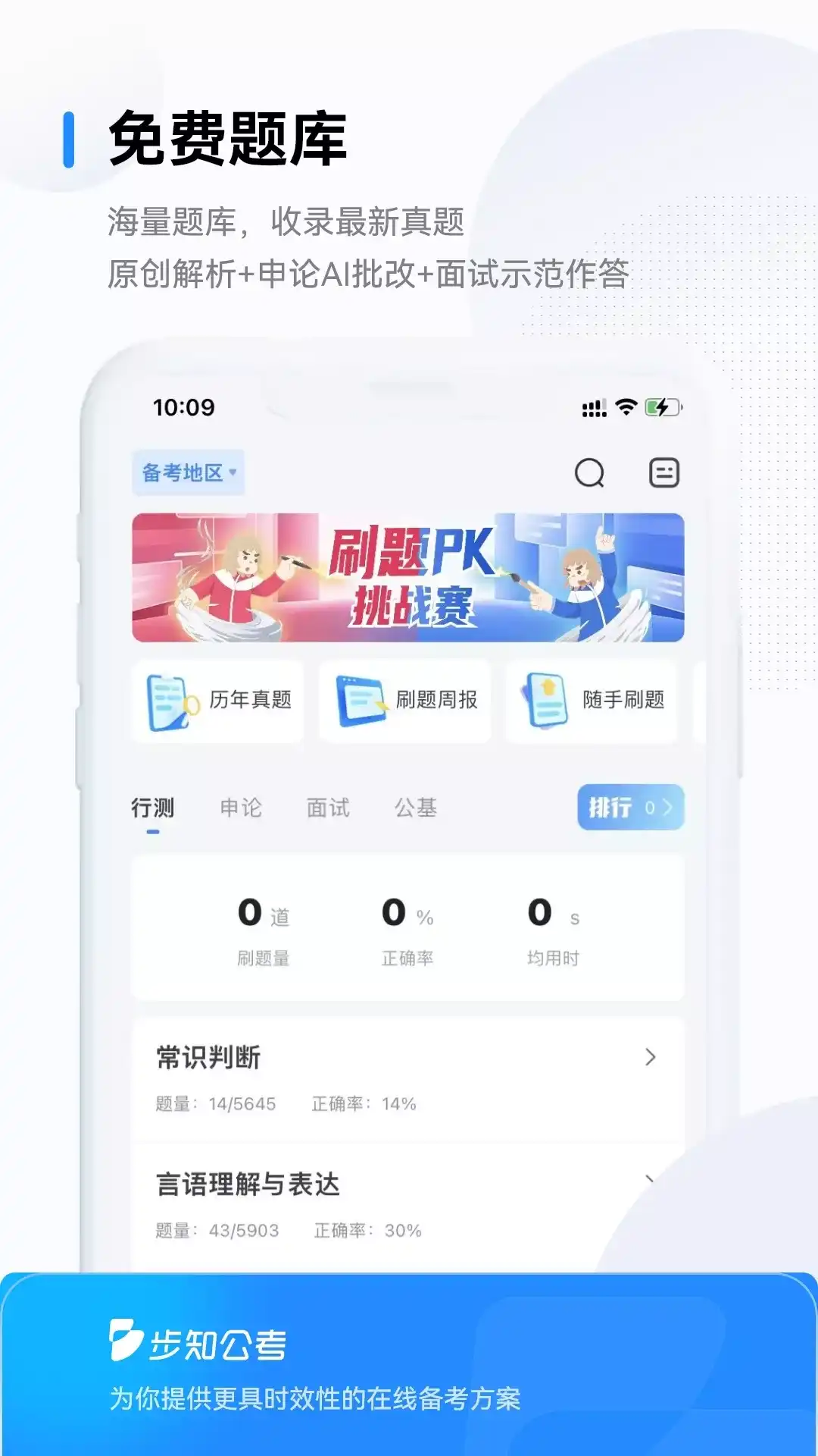 步知公考,是专为线上公职类备考人群提供学习、训练、交流的在线备考智能学习平台。 特色服务: 1、智能训练题库: 海量题库,收录大量试题,提供原创试题文字和视频+申论AI批改+面试示范作答。 2、训练营:网罗海量整卷、免费在线模考、视频解析课;FM晨读音频和文稿,轻松积累热点;面试对练答题点评一体,准确把握面试思维。 3、互动交流:每日更新老师们的干货技巧,更有学员动态、互动等。 立足于考情,追求备考效率及考试应变性,通过对线上学习场景的深入研究,提出更符合线上备考的学习、训练方式;AI赋能对能力课、能力训练、阶段测评、试题模拟进行全方位技术追踪,提供多维度视角,辅助用户自我学习管理,规划具有针对性的提升路径。 高效、实用、具有针对性是我们的追求。 客服电话:4000005784