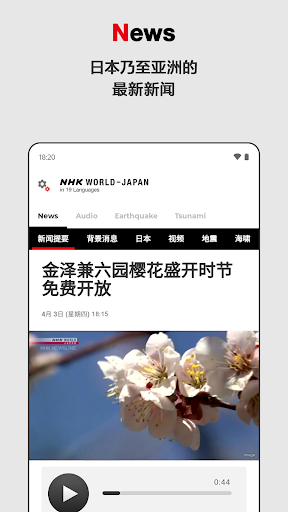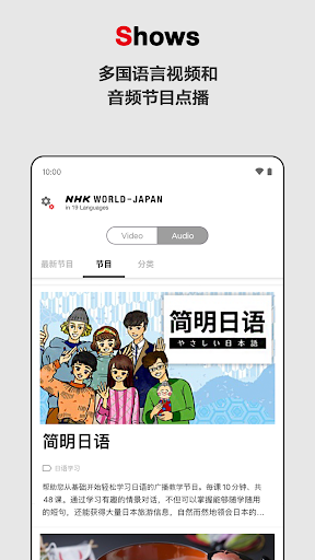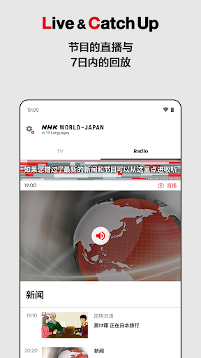 NHK日本国际传媒是日本公共广播电视机构NHK的对外播出平台,通过电视、广播以及互联网,使用多国语言向全球受众提供日本及亚洲的最新资讯。(不含日语新闻及节目)<br><br>[特色功能]<br>- 支持19种语言<br>阿拉伯语, 孟加拉语, 缅甸语, 中文(简体·繁体), 英语, 法语, 印地语, 印尼语, 韩语·朝鲜语, 波斯语, 葡萄牙语, 俄语, 西班牙语, 斯瓦希里语, 泰语, 土耳其语, 乌尔都语, 越南语, 乌克兰语<br><br>- 提供日本及亚洲的最新新闻<br>- 推送地震海啸速报与气象特别警报信息(英语, 中文, 韩语·朝鲜语, 印尼语, 西班牙语, 泰语, 法语, 印地语,越南语,葡萄牙语和俄语)<br>-节目的直播与7日内的回放<br>-提供多国语言视频音频节目网络点播