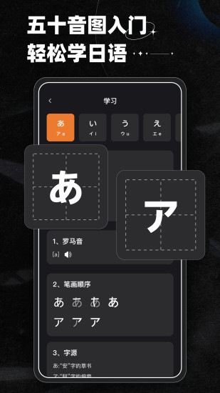 【海量用户使用,多个日本博主推荐】 为日语各阶段学习量身打造的APP。日语五十音图、日语单词、日语语法、日语Jtest、JLPT考级真题测试、漫学日语、日漫经典语录、日常生活旅游词汇、文章读物定期更新……步步进阶,轻松学日语! 【五十音图】每个假名都由专业声优录制发音,开发书写顺序,以及每个假名关联词记忆法,另外每个假名都录制了视频讲解,包括发音口型、书写顺序、记忆法等,加深用户对假名的理解。 【日语提升练习】 AI练习五十音发音:假名、日语单词、日语发音 新标日语课本学习:沉浸式漫画对话练习,边学边玩 漫学日语:漫画场景日语对话练习,让你边玩边学日语 假名复习:完整的五十音图表,智能复习提醒 日常词汇:生活旅游常用词,一一列举,随时随机背诵学习 经典语录:收录了日本动漫/电影中的台词语录,配合图片音频一起食用 文章读物:分为课外读物、考试留学、趣味干货三个大类,配合日语和译文,满足日语初学者阅读需求 【考试真题】分为日语n1、日语n2、日语n3三个等级能力考试的真题训练。 【常用口语】包括问候寒暄语、自我介绍、旅游用语、购物等 30个场景模式的日语常用语,在日本旅游简单会话无障碍。
