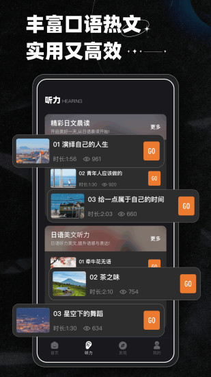 日语GO从零基础入门到高阶,让你零基础轻松学日语。课后真人云辅导,日中翻译,单词实练,趣味学习。一款好用的日语入门学习工具,对日语初学者很友好。 =====我能给你什么===== 【专业课程】专业课程学习,自由选择时间和地点,充分利用碎片时间,随时随地视频课程学习,满足你个性化的学习需求。 【高效学习】词汇本与五十音功能,充分感受沉浸式高效学习法,摆脱死记硬背,自然建立语感,科学有效地提升学习效果。 【趣味学习】地道的口语日常学习,劳逸结合,趣味学习,提高学习沉浸感,在趣味学习中感受日语能力提升。 【历年真题】收录N1-N5历年真题,日语知识和解题技巧在日常刷题中充分利用,考前刷题,考前冲刺。 【课后云辅导】真人答疑-作业批改-温暖陪伴。课后真人辅导老师,辅导学习,快速提升。你需要的是一位引路人。
