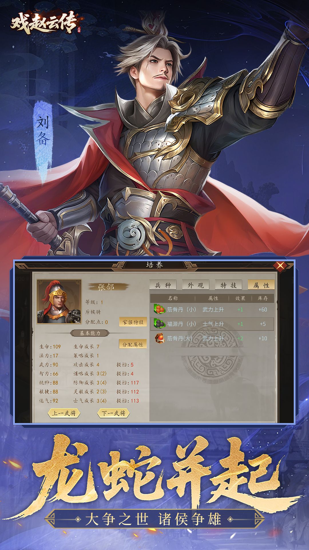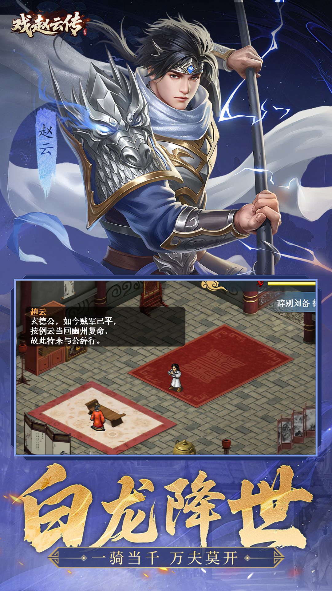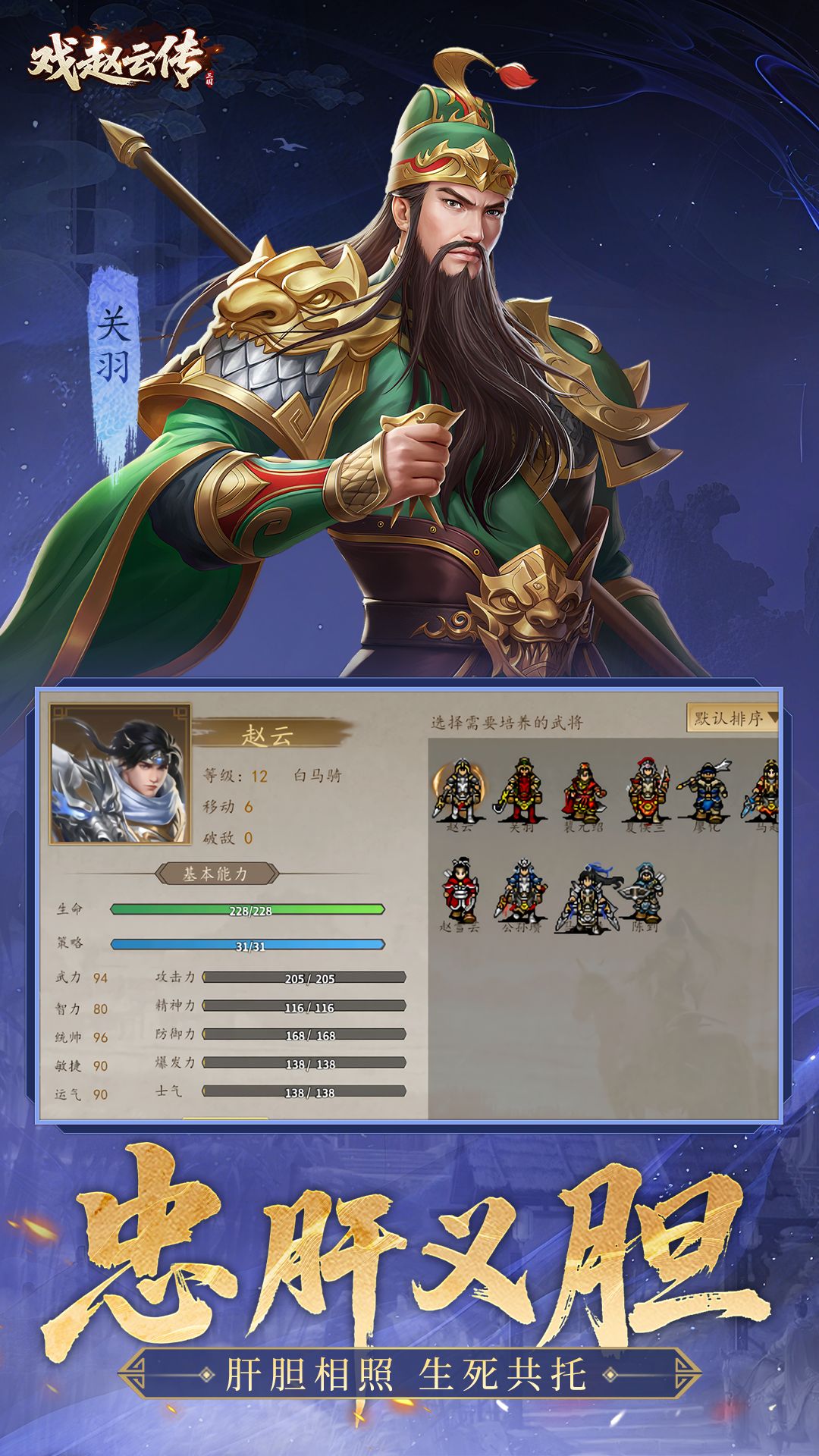 《三国戏赵云传》是一款以三国名将赵云为主角的回合制策略战棋游戏,游戏以《三国演义》为蓝本,采用经典战棋玩法,通过兵种相克机制和各种特色武将为玩家打造高自由度的三国战场体验。玩家将化身“常胜将军”赵云,从常山少年到一方诸侯,亲历界桥之战,长坂坡之战等史诗战役,在诸多巾帼英雄的辅佐下,书写拨乱反正、拯救万民的传奇篇章。