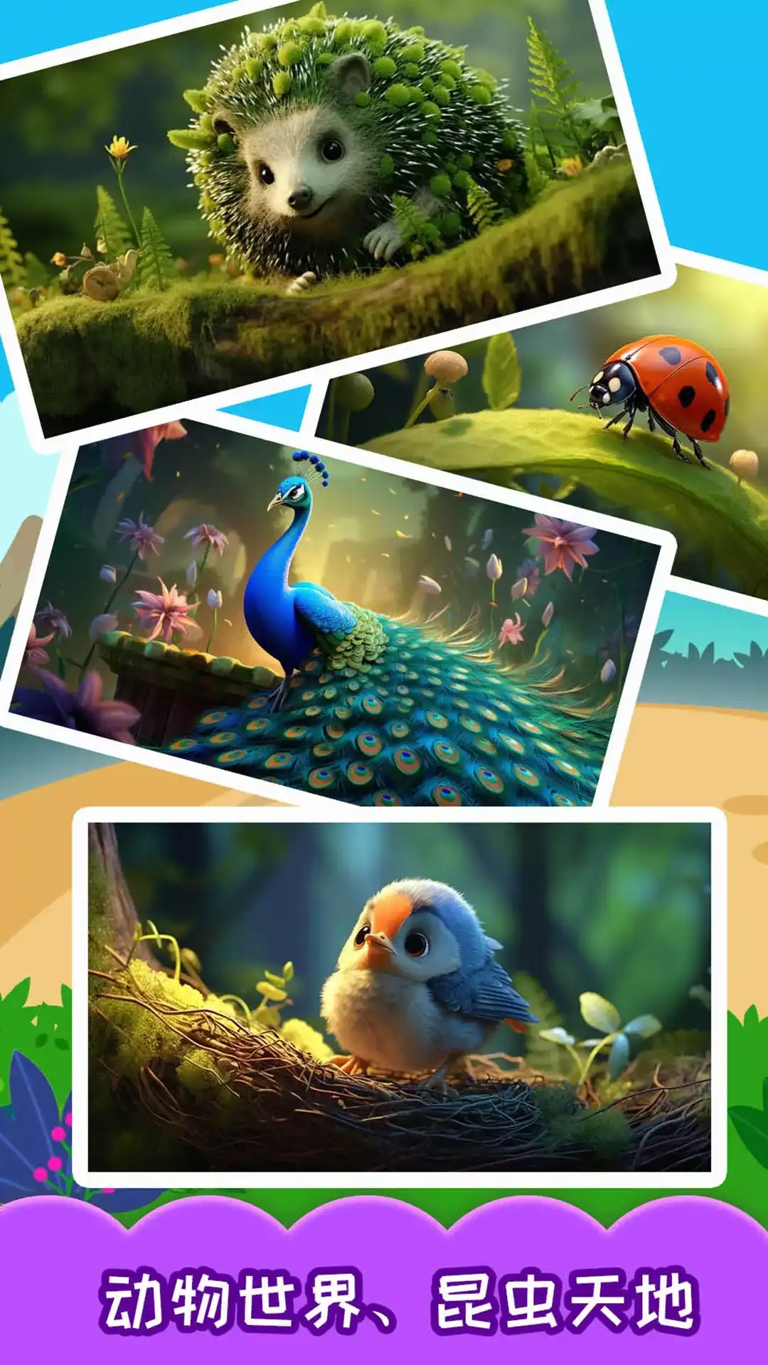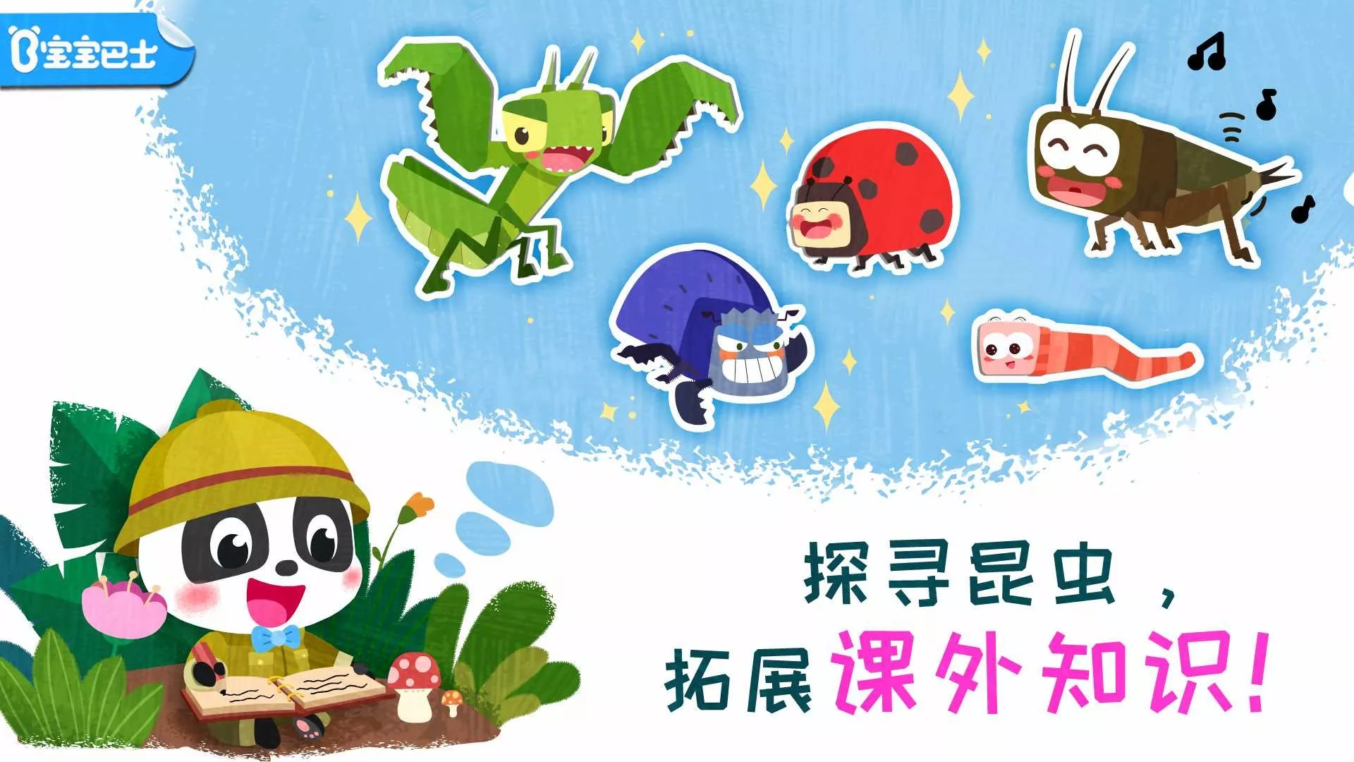 【奇妙昆虫日记】是一款专为宝宝设计的昆虫认知APP。 宝宝通过寻找+观察+思考,便能轻松学习昆虫知识! 瓢虫喜爱的食物是什么?屎壳郎有哪些外形特点呢? 宝宝们,一起开启奇妙的昆虫世界之旅吧! 产品内容: 昆虫“捉迷藏” ——锻炼宝宝观察力 小昆虫们都藏起来了,宝宝快发挥观察力,拨开蘑菇、翻动草丛、搬起石头,认真寻找!它们会喜欢藏在哪里呢? 益智昆虫图鉴 ——认知昆虫外形 成功找到昆虫,获得贴纸。宝宝根据昆虫外形,动手又动脑,完成拼图。拼图里面还有惊喜等宝宝发现哦! 森林医生来帮忙 ——了解昆虫习性 植物生病了,瓢虫、蚯蚓可是优秀的森林医生!宝宝引导瓢虫吃掉害虫,拖动蚯蚓消灭土里的细菌,帮助植物健康生长。 昆虫跳高、击敌赛 ——考验宝宝反应力 蟋蟀参加跳高赛,宝宝帮它躲避猫头鹰,跳上蘑菇,一飞冲天。警报!蚂蚁来偷螳螂卵了,宝宝快击退敌人吧! 产品特色: 1、结合昆虫特性进行互动,增进宝宝对自然的好奇心; 2、帮助宝宝认知昆虫的外形、食性、天敌、居住环境等; 3、精美萌趣的昆虫角色,培养宝宝的探索兴趣。 宝宝巴士(BabyBus)是专注打造儿童启蒙数字产品的原创品牌,累计服务全球5亿家庭用户。宝宝巴士秉承“快乐启蒙”的理念,用奇妙有趣的方式,为儿童量身定制以“好听(国学故事)、好看(儿歌动画)、好玩(互动APP)”为特征的海量数字启蒙内容,让孩子趣味认知、感受“真、善、美”。 宝宝巴士(BabyBus)已发布200多款APP,推荐使用宝宝巴士儿歌、宝宝巴士故事、宝宝巴士奇妙屋、宝宝巴士、宝宝恐龙家园、化妆小公主、宝宝航海挑战、奇妙美味日记、奇妙生日派对、奇妙鲜花房、奇妙恐龙帮帮队、奇妙手工调色、奇妙森林历险记、奇妙艺术日记、宝宝爱自然、照顾小宝宝、中华美食、奇妙好习惯、宝宝地震安全、奇妙星际厨房、宝宝学配对、奇妙农场、糖果工厂、雪糕工厂、宝宝小船长、奇妙咖啡餐厅、宝宝小画板、宝宝运动会、宝宝调色屋、宝宝甜品店、宝宝爱水果蔬菜、宝宝开车大冒险、恐龙王国、宝宝超市、宝宝医院、宝宝假日旅行、宝宝上厕所、宝宝梦想小镇、宝宝爱整理、公主化妆舞会、宝宝救援队、宝宝建城市、时尚小公主、奇妙宠物美妆店、奇妙运动日、宝宝魔力画笔、宝宝幼儿园、奇妙碰碰车、奇妙企鹅部落、奇妙梦幻城堡、奇妙昆虫日记、奇妙的动物家庭、奇妙珠宝店等APP。 欢迎联系 微博:@宝宝巴士 官网:http://www.babybus.com 邮箱:cn@babybus.com