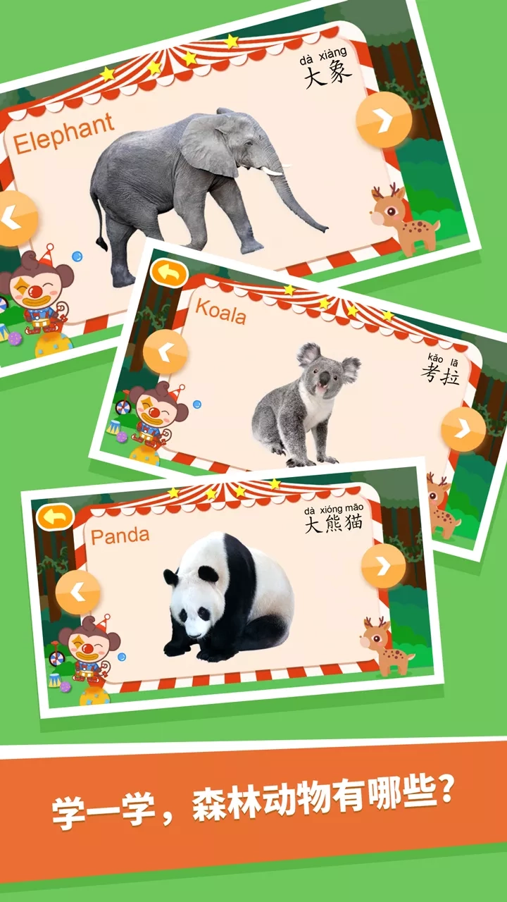 儿童宝宝的动物园~快来和可爱的小白兔、威武的狮子一起玩耍吧!和动物们做朋友! App以有趣的动画和精美的图片,对森林的动物进行介绍,寓教于乐,让小朋友认识动物,并了解动物的特点。 部分动物介绍: 大象:目前陆地上庞大的陆地动物,拥有长长的鼻子和大大的象牙! 河马:身体庞大而拙笨,嘴巴比陆地上任何一种动物的嘴都大。 狮子:大型猫科动物,肉食,常以伏击方式捕捉其它小型动物,是草原上的霸主! 猴子:小猴子真调皮,蹦蹦跳,爱吃香蕉和桃子! 小白兔:白又白,两只耳朵竖起来,爱吃萝卜和青菜,蹦蹦跳跳真可爱。 APP特点: 1、丰富内容+卡片和动画,让孩子在欣赏卡片同时轻松学习,拓宽知识面!做动物园的小小园长! 2、丰富的动物场景,精美图片和动画;