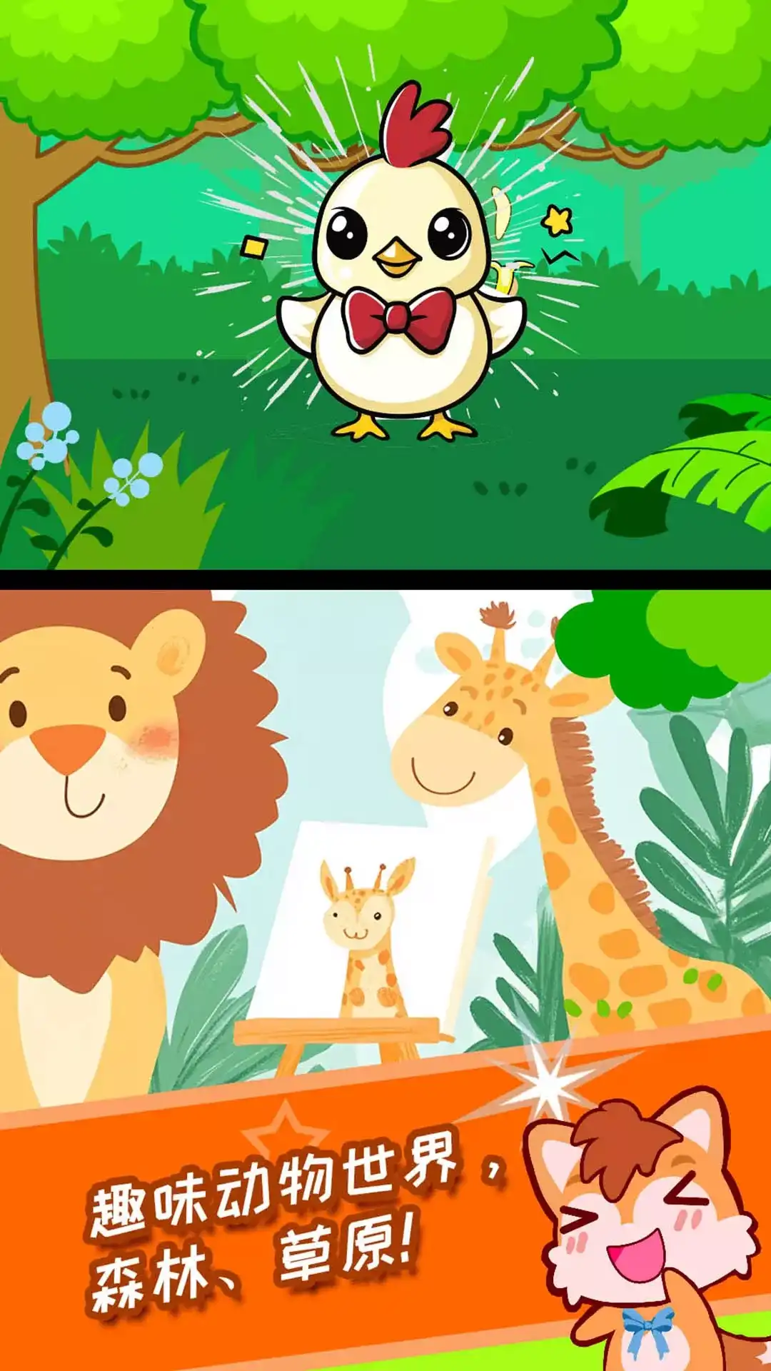 孔雀的家在哪里?为什么是狮子妈妈去捕猎? 这些宝宝好奇的问题,让【奇妙的动物家庭】来回答! 宝宝们,竖起好奇的小耳朵,动物的家庭故事要开讲啦! 外形特征:公鸡VS母鸡 宝宝分不清公鸡母鸡?【奇妙的动物家庭】有妙招!宝宝反复拼动物拼图,发现它们的外形差异:公鸡的鸡冠比母鸡大,羽毛更鲜艳。 寻找栖息地:树丛&草地 孔雀公主想住在林间草地,宝宝帮它打造舒适的家吧!先收集树枝、羽毛,用树枝拼搭出圆形的窝,接着铺满羽毛。孔雀公主的新家完成! 抵御天敌:袋鼠VS野狗 野狗入侵,小袋鼠有危险?袋鼠爸爸准备战斗,以一挑十,追逐、打败野狗。当领地遭到入侵,袋鼠爸爸随时保持警惕,保卫家园。 喂养幼狮:捕猎&觅食 小狮子饿了,狮子妈妈得寻找食物,喂饱小狮子。跟踪猎物足迹,靠近它们,瞄准时机,“咻”地一下扑倒猎物,小狮子的晚餐有着落啦! 【奇妙的动物家庭】中,不仅有森林之王-狮子、跳高达人-袋鼠、还有短跑健将-梅花鹿......它们的家庭故事,宝宝一定不能错过! 宝宝巴士(BabyBus)是专注打造儿童启蒙数字产品的原创品牌,累计服务全球5亿家庭用户。宝宝巴士秉承“快乐启蒙”的理念,用奇妙有趣的方式为儿童提供免费的数字内容,量身定制“好听”(国学故事)、“好看”(儿歌动画)、“好玩”(互动APP)等系列内容产品,让孩子在趣味中认知世界,感受“真、善、美”。 宝宝巴士(BabyBus)是全球5亿家庭用户的选择,陪伴宝宝快乐成长,让宝宝学会独立思考,享受探索世界的乐趣。同时也为家长们提供专业、全面、丰富及个性化的启蒙产品。 【宝宝巴士】儿童app,获得宝宝巴士世界、宝宝巴士儿歌、宝宝巴士故事、宝宝巴士奇妙屋、宝宝巴士、宝宝恐龙家园、宝宝梦想小镇、宝宝爱整理、公主化妆舞会、宝宝救援队、宝宝建城市、时尚小公主、奇妙宠物美妆店、宝宝爱水果蔬菜、宝宝动物世界、奇妙环游世界、宝宝救护手册、宝宝动物拼贴、宝宝消防安全、宝宝鸟类认知、宝宝小牧场、宝宝环保手工、宝宝梦想职业、宝宝天气认知、奇妙春游日、奇妙咖啡餐厅、奇妙蛋糕店、奇妙料理餐厅、奇妙小茶园、宝宝启蒙认知卡、宝宝音乐派对、宝宝颜色梦工场、奇妙手工调色、宝宝时尚设计师、宝宝创意拼贴、奇妙的工程车、奇妙昆虫世界、奇妙森林历险记、宝宝不怕、宝宝营养料理等使用者的一致推荐。 欢迎联系: 微信:宝宝巴士 微博:@宝宝巴士 官网:http://www.babybus.com 邮箱:cn@babybus.com