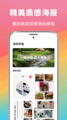 拼照片:一款简单易用的图片编辑和拼图制作软件。 海量严选模板,一键拼图。简单易用,百变多样。轻松引爆你的朋友圈! 不管是娱乐还是工作,海报社都可以为你轻松的处理照片,随时随地出大片。 【海报拼图】 提供各种精美的主题海报模板,主题涵盖生活、旅行、爱情、美食、宝宝等丰富的应用场景。精彩的图片组合、精致的照片装饰、酷炫的海报排版,轻轻松松制作出有故事、有格调的美图大片。 【无缝拼图】 简约而不简单的无缝拼图,有你爱不释手的各种经典照片排版,也有你满心期待的花式创意排版,轻轻松松衔接你的照片图集,简简单单合成你的专属图片秀。 【长图拼接】 轻轻一点就能将你的照片一张接一张拼成长图的神奇功能,提供各种形状的图片蒙版,让你的长图秀美出新高度,火爆朋友圈。 温馨的照片滤镜 不止是帮您拼,还负责帮您美!轻轻上传您的照片,自动给您加上超美的照片滤镜,一边拼图一边美图,给您更好的体验。