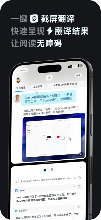 Para 翻译是一款高效的多平台翻译聚合工具,专为追求精准与效率的用户设计。支持全局任意界面文本翻译,助您快速获取最准确的翻译结果。 核心功能 截屏翻译:截屏后快速呈现翻译结果,让阅读无障碍 全局划词翻译:在任意界面复制文本,画中画悬浮窗秒显结果 多平台聚合翻译:集成主流翻译引擎,实时比对,确保最佳翻译效果。 大爆炸取词:截屏后快速提前文案,一键直达各平台搜索页 自定义浮窗样式:个性化卡片设计,多种配色与字体大小自由调整。 离线翻译:无网络或弱网环境下,依然畅享翻译服务。 Para 翻译的应用场景 学术研究:研究生划选外文文献复杂句式,多引擎对比确保术语精准,悬浮窗悬浮显示不打断阅读节奏。 社交冲浪:刷主流社交平台时长按复制外文动态即刻翻译,浮动窗口模拟聊天气泡样式融入社交界面 订阅将会自动续费,除非您在当前订阅结束前 24小时以上取消续订。 如需取消订阅,可手动在iTunes/AppleID设置管理中关闭自动续费功能。 试用期内,iTunes账户如不取消订阅,则会在试用期结束时自动开通订阅并扣款,未使用的试用时长在购买订阅之后将会自动作废, 【自动续费Para会员】 -- Para会员权益:自定义翻译API;翻译额度20w字符/月;聚合翻译;截图&录屏翻译;多种翻译类型;自定义悬浮样式; -- 订阅周期:1个月(月度会员连续包月产品),1年(年度会员连续包年产品),终身(终身会员永久产品) -- 订阅价格:以申请信息为准,例如连续包月产品为每月6元;连续包年产品每年38元;永久会员产品88元; -- 付款:用户确认购买并付款后记入iTunes账户。 -- 取消续订:如需取消续订,请在当前订阅周期到期前24小时以前,手动在iTunes/AppleID设置管理中关闭自动续订功能。 -- 续订:苹果iTunes账户会在到期前 24小时内扣费扣费成功后订阅周期顺延一个订阅周期, -- 首月免费试用:免费试用期内再次续订或取消续订不会向用户收回免费试用权益,用户可以继续试用直至试用周期结束: -- 隐私政策: https://gwrdluzl9j9.feishu.cn/wiki/M9BZwKtX6iD7gekvlyScKo8mnVb -- 自动续费协议: https://gwrdluzl9j9.feishu.cn/wiki/Rxw3wJCUfidKb3kJUImczcnCn2b