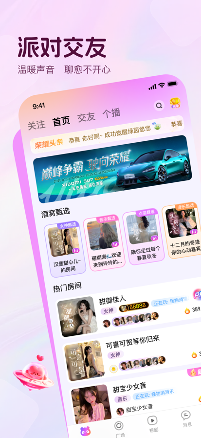 小酒窝语音,开启全新社交之旅。以声会友,畅聊心声。分享生活点滴,用小酒窝搭建起情感桥梁,让你在多元声音世界中,找到契合的陪伴,收获真挚情谊,告别孤单,拥抱温暖社交圈。 【多人语音聊天室】 扩列交友、情感聊天、海量优质声音,随时结识更多趣味好友并及时互动陪伴。 【广场瞬间】 在“广场”探索来自各地用户的最新内容,或记录生活中的有趣,帮你表达真实自我,分享给更懂你的人。 【游戏互动】 桌球、怪物消消乐、骗子酒馆、找茬特工队、方块大师、泡泡龙、飞行棋、连连看、排雷兵 和你的朋友一起打台球、经典游戏玩乐嗨不停! 【消息】 随时随地和好友聊天,分享你的快乐~ 来小酒窝语音,绽放你的多彩生活!