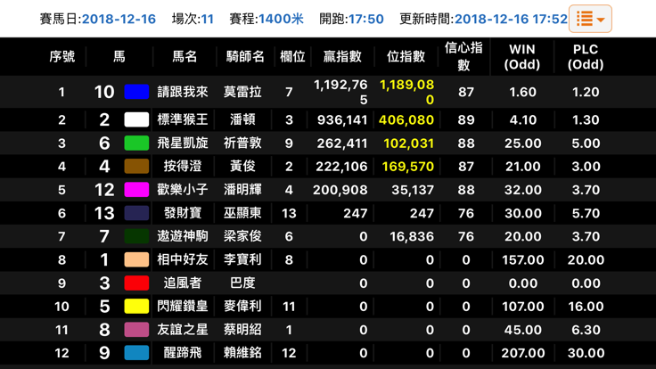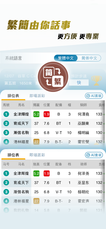 利用各大不同彩池與不同時段的各項數據進行綜合智能分析與計算,為馬迷提供一個賠率以外的重要參考數值。 程式介面以簡潔、直觀、清晰為主,輕鬆使用便能助您運籌帷幄、提高勝算! 無論是手機、平板或電腦,數據資料均即時同步,滿足各大馬迷的使用習慣。 客服團隊全年無休為廣大馬迷服務,無論是會卡購買、系統操作或諮詢均可獲得即時支援。 所有客戶首次註冊均可獲得註冊後的首個賽馬日免費試用,歡迎註冊體驗。