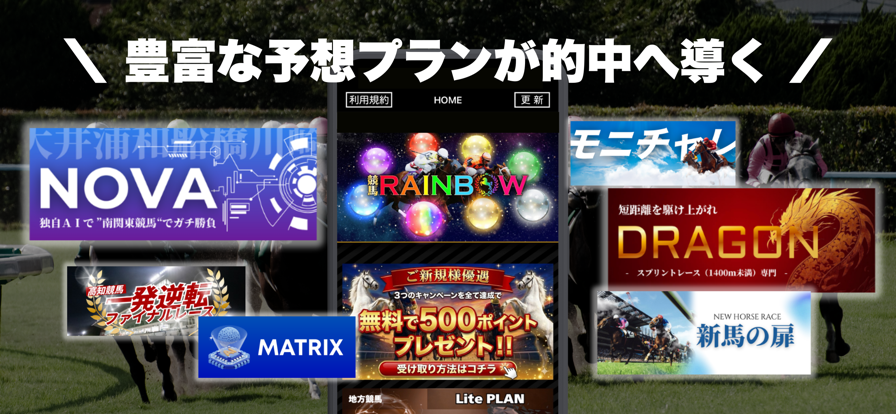 ■競馬RAINBOWとは 総インストール数130,000を超える競馬予想アプリです。 全25会場の中で、『高的中率・高額配当が見込めるレースのみ』を厳選し、無料で公開される情報は毎日2レース! つまり、毎日が稼ぐチャンスということ! ■毎日無料予想を2R公開 毎日開催されるレースの中には鉄板と思わせるほど堅いレースがいくつか存在します。 ただ、それらは的中しても大きな払戻には成りません。 当競馬RAINBOWでは厳選された情報の中でも、 『一定水準の利益が見込めない』予想は有料予想として採用致しません。 しかしながら、競馬RAINBOWの実力を知るには十分な情報である為、 初心者の方でも手軽に楽しめるよう、毎日2レース無料でお届け致します。 無料予想のほかに一部有料予想もありますが、他の予想サイト等に比べ圧倒的に安価な価格帯となっています。 ■こんな方にオススメ ・競馬初心者 ・堅いレースでしか的中した事の無い ・少ない資金からでもお金を増やしたい ・競馬で赤字続き ・高額的中を経験してみたい ・堅実に勝ちを積み重ねたい ・当たるが儲かった試しが無い ・予想をする時間がなかなか取れない ・他の競馬予想サイト等で負け続き ■全25競馬場予想 競馬RAINBOWは、中央競馬だけではなく地方競馬の予想にも対応しています。 札幌競馬(北海道) 函館競馬(北海道) 福島競馬(福島県) 新潟競馬(新潟県) 中山競馬(千葉県) 東京競馬(東京都) 中京競馬(愛知県) 京都競馬(京都府) 阪神競馬(兵庫県) 小倉競馬(福岡県) 地方競馬 (15会場) 帯広競馬(北海道・ばんえい) 門別競馬(北海道) 盛岡競馬(岩手県) 水沢競馬(岩手県) 浦和競馬(埼玉県) 船橋競馬(千葉県) 大井競馬(東京都) 川崎競馬(神奈川県) 金沢競馬(石川県) 笠松競馬(岐阜県) 名古屋競馬(愛知県) 園田競馬(兵庫県) 姫路競馬(兵庫県) 高知競馬(高知県) 佐賀競馬(佐賀県) 是非、中央競馬予想・地方競馬予想にお役立てください。 ※本アプリ及びご提供するサービスは的中を保証するものでは御座いませんので、予めご了承ください。