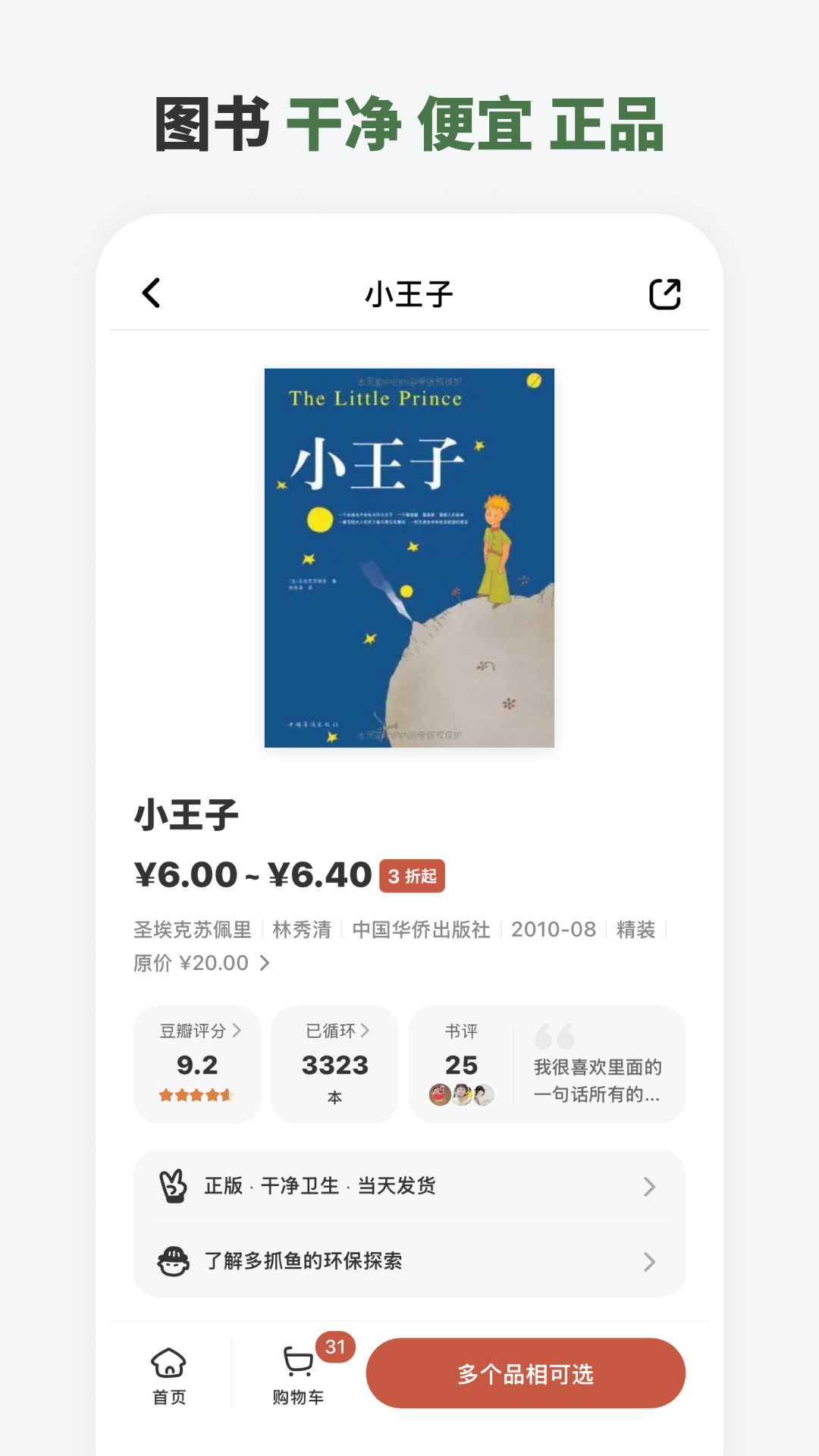 多抓鱼是一家生活耐用品循环商店。你可以轻松地卖掉不再需要的服饰、书籍和电子产品,也可以放心地购买经过我们核验翻新的优质好商品。<br><br>- 轻松出闲置<br><br>使用多抓鱼 App 在线提交闲置的书籍、服饰和电子产品,获得估价。顺丰快递会按照你预约的时间免费上门取件,仓库在收件审核之后会立刻打款给你。<br><br>- 正版鉴定、消毒翻新<br><br>多抓鱼在天津和昆山建有两个工厂,所有回收的物品都会在这里经历品相和正盗版鉴定、清洁翻新、臭氧消毒、重新包装等流程,重获新生。<br><br>- 划算买二手<br><br>品类丰富的二手书、服装和电子产品,均由多抓鱼消毒和翻新,价格 2-4 折,用划算的价格买到真正的好东西。<br><br>我们相信「真正的好东西值得买两次」。<br><br>关注我们的微博与微信公号,不错过任何一条抓鱼消息。<br>微博:@多抓鱼<br>微信公众号:多抓鱼<br>网页地址:www.duozhuayu.com