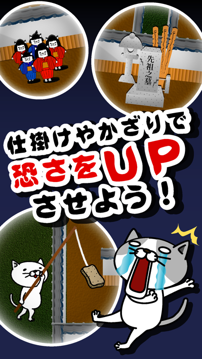 ねこ達がお化け屋敷を経営!? ==ねこあぷりの新作ゲームが出ました== ひっそり佇む何もないお化け屋敷・・・ このお化け屋敷に、たくさんかざりつけをしたり、 脅かす仕掛けを配置して 人気のお化け屋敷を作ろう! お客さんもねこ。 脅かす仕掛けもねこ。 ねこだらけのかわいい(?) お化け屋敷です。 評判が上がっていくと色んな種類の ねこさん達がやってくるので、 どんどん評判をあげてレア度の高いねこさんを 見つけてね! お化け屋敷にやってきたねこさんは 図鑑に登録されるので、 頑張ってレア度の高いねこをあつめよう! 収集要素・放置系ゲーム要素・経営シミュレーション要素など 盛りだくさんのゲーム内容!! ありそうで無かった、 夏にピッタリのにゃんこお化け屋敷を 是非プレイしてみよう! <音楽素材提供> ・効果音ラボ ・H/MIXGALLERY ・ポケットサウンド ・音人 ・くらげ工匠 ・魔王魂