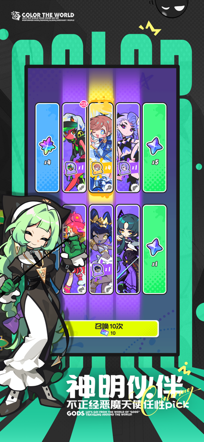 各位伙伴,由于不明来源的外星人入侵,地球正在面临失色危机。神魔委员会今日起正式发起一级警报!号召各位伙伴一起拿起染色武器,为地球找回失去的颜色。打工恶魔和不正经神明娘组成的“染色小分队”已经就绪,等待各位的加入。现在,让颜料的喷溅声提醒所有人——管你黑色白色,通通涂成彩色! - 《乱涂!彩世界》是一款潮酷风格的不正经神明娘爆涂“神”游,在这里你可以体验: 【神彩飞扬,美少女乱涂搞点颜色】 染色爆屏,烦恼清零~划动指尖,和高颜值不正经的神明娘组队闯关,用颜料轰炸这个黑白世界。在这里,无需复杂的操作,与你并肩作战的神明会自动瞄准目标,只需尽情释放情绪,享受piupiu爆涂的解压快感。 【神明伙伴,不正经恶魔天使任性pick】 心愿自选,拒绝歪卡~无论是恶魔还是天使都任你pick~超会营业的地偶爱神丘比特,“无意”引发一场又一场爆炸的恶作剧之神洛琪,誓死守卫披萨不被菠萝”污染”的教会圣女狄安娜,全员“不正经”神格任你解锁。全员共享养成进度,无缝切换战斗搭档,见证不同神明碰撞出的奇妙颜色反应,你的染色小分队永远充满新鲜感! 【神局无限,随机整活给旅途加点料】 多样玩法,随心切换~随时组建阵营和神明娘来一场喷溅对决,转身又能开一局染料塔防保卫战,玩累了就去无限游戏厅体验未知事件...上一秒还在苦苦用普通攻击打小怪,下一秒化身“流焰斩”战神狂扫全场;上一局撞见奇怪雕像丢失了30%生命值,下一局获得战略压缩包拉满游戏券。这场旅途永远有新花样可以解锁~ 【神番爆梗,神明娘戏精日常非礼勿视】 漫画剧情,全程高能~一格漫画三个梗,咱就是古希腊掌管乐子的神~你可以围观北欧主神和某位治安官不可告人的故事,欣赏八百万神明高中的中二女高打call日常,甚至...通过守护猫蛋蛋拯救世界?漫画式过场剧情+无厘头脑洞,全员乐子“神”演绎的戏精抓马日常正在热映中,不容错过~ 【神游世界,坐上魔性载具拉轰兜风】 环游世界,花式整活~你可以开着改装印钞车横扫自由国的女神像,也可以骑上肌肉骆驼兄贵爆涂金字塔,还能乘着锦鲤穿越霓虹街区......各种魔性载具任你驾驭,全球著名地标都变成你的涂鸦画布~