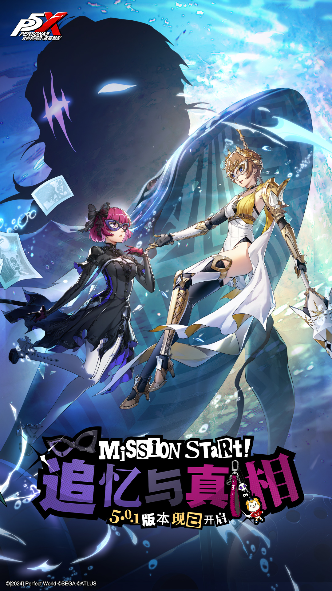 P5X二周年庆版本「追忆与真相」4月2日开启!全新成员「平野亚兰」加入怪盗团,五星限定电击属性反抗角色「新井素羽·晴光」登场! 《女神异闻录:夜幕魅影》(简称:P5X)是获得了SEGA正版IP授权,由ATLUS全面监修深度参与,完美世界游戏打造的异世界都市冒险JRPG。白天感受潮酷都市生活与青春恋爱日常,放学后化身华丽怪盗潜入宫殿夺宝,体验双面人生!