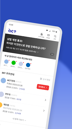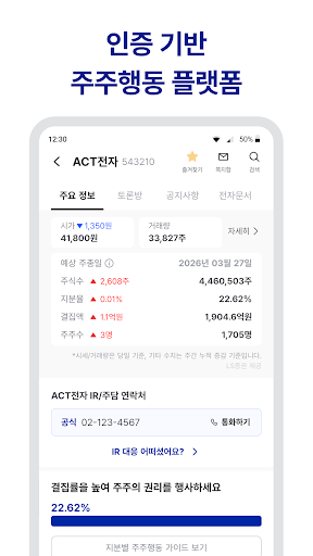 我们发出小股东的声音,将其传达给世界并带来变革。<br>从股权合并到股东大会,我们提供成功的小股东运动所需的一站式服务。<br><br>轻松采取与您持股相关的股东行动!<br><br>只需点击几下即可参与AtoZ股东活动!<br><br>移动电子代表团,无需去股东会!<br><br>通过投票和调查来收集和统一意见!<br><br>从股东角度写出的差异化分析数据!<br><br>[可选访问权限]<br>· 麦克风:拨打 IR/主电话或咨询客户时需要<br>· 位置:查看并显示当前位置<br>· 电话:需要通过手机号码进行身份验证<br>· 摄像头:二维码/实体卡/身份证识别、图片上传、个人资料注册所需<br>* 即使您不授予可选权限,您也可以使用该服务,但某些功能的使用可能会受到限制。<br><br>※ 服务查询信息<br>如果您可以向 service@act.ag 报告任何建议或问题,我们将不胜感激。