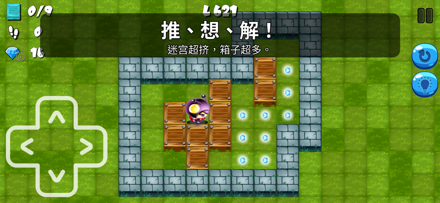 好多小伙伴们说有点关过不去,我要再说一遍啦: 第9关可以过! 第13关可以过!! 第18关可以过!!! 每一关都经过严格测试啦~~~ 美术MM,程序GG亲测可以过的~~ 而且每一关是有攻略的的(编辑MM欲哭无泪中...) 当然啦啦,什么事情都不是绝对的,万一过不去,就给我们留言吧 经典休闲智益游戏《推箱子》来啦! 好玩有趣,打发时间,提高智力神器! 【产品简介】 这是一款经典休闲智益小游戏。游戏规则简单又有挑战性,把所有的箱子推到目标点就是胜利!你可以通过后退按钮撤销一步,也可以查看本关的攻略。 【游戏特色】 ◆每关都有攻略、畅快玩 一步箱子走错了,不用着急。无限撤销,畅快玩。每一关都有步骤攻略,卡在哪一关了,就看攻略吧! ◆简单容易上手 老少皆宜,单手操作,轻轻松松。红旗代表目的地,把箱子推到红旗目标点就胜利啦。每天玩几关,能够活动大脑,提升智力。 ◆精心的卡设计 每关都设计的巧妙并不断优化,整体难度是逐渐上升的,也会中间穿插一些很简单的关,让你大脑休息下。精美的画面和欢快的音乐给你视觉和听觉上的双重快感! ◆随时随地都能玩 游戏不用联网,地铁,公交都能玩。每天登录送金币,好玩的游戏中心。 【玩家评价】 ◆比一般的搬箱子游戏画面精美不少,是不错的智力小游戏。 ◆这个推箱子主要是每关都有攻略,遇到解不出来的关卡,可以看看,比一般的推箱子游戏好多了 ◆我喜欢玩这样的推理类型的游戏,越是难的关卡,越想挑战,有点着迷哦!!! 【友情提醒】 更多功能不断开发中,游戏的完善离不开您的支持。 如果你有任何问题或者建议,请给我们留言