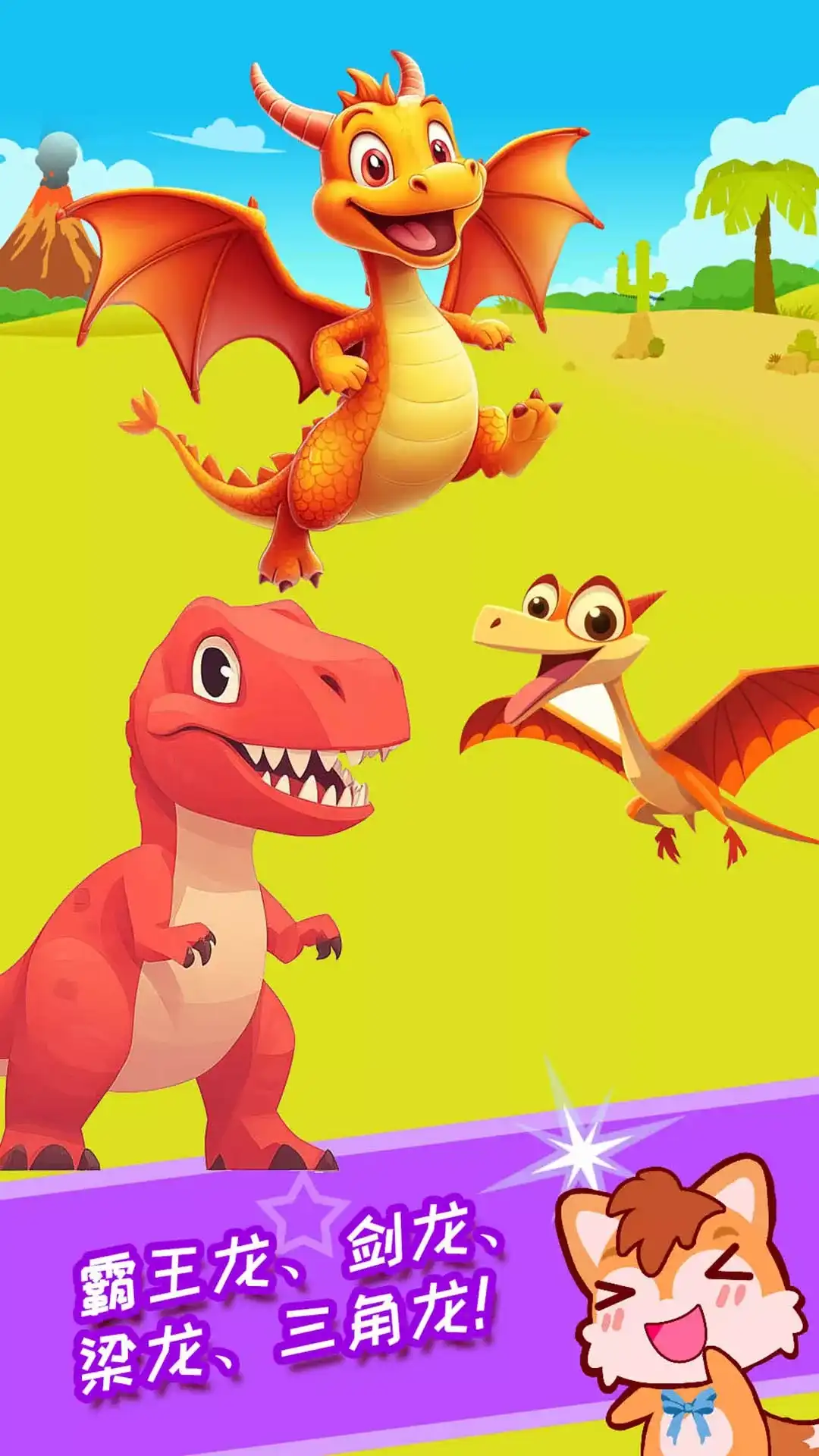 【恐龙乐园】,恐龙知识启蒙科普小站。 【恐龙乐园】对外开放啦!在【恐龙乐园】,宝宝可以进行模拟孵恐龙蛋、喂养恐龙、逗乐恐龙等趣味体验,还可以集结霸王龙、埃及棘龙、爱氏角龙等恐龙,一起探险神秘丛林世界! 现在跟着熊猫奇奇妙妙讲解员一起来体验探索恐龙世界的乐趣吧。在侏罗纪公园里观察恐龙,到恐龙博物馆里看看恐龙化石。海量恐龙百科知识,等宝宝来解锁哦!霸王龙、爱氏角龙、蛇颈龙……是不是迫不及待来这个恐龙乐园了呢! 【孵恐龙蛋】:模拟孵恐龙蛋,叶子+热量,小恐龙马上就要孵出来了。 【喂养恐龙】:食肉还是食草?喂养恐龙,了解霸王龙、副栉龙、埃及棘龙等的饮食特征,认识各种各样的恐龙。 【趣逗恐龙】:挠痒、玩球、逗乐……这里有与恐龙成为好朋友的指南。还有恐龙拼图哦,更加了解恐龙的外形。 【恐龙种类】:精选6大热门恐龙,形态各异。 【有声博物馆】:恐龙身体特征、生活习性,一站式快乐认知。