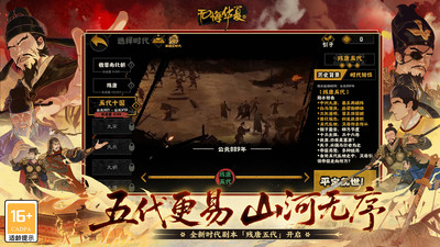 《无悔华夏》四周年钜献!全新主时代五代十国剧本《残唐五代》现已开启! 可体验梁、晋、残唐、吴越、归义军等13+全新五代势力。冯道、周德威、李存孝、王朴等全新16位时代名臣登场!全新义子宗亲系统、时局阵营玩法等开放,你将在繁荣与危机间抉择天下命运——是走向武夫当国,还是迎来太平治世?庆典福利奉上,登录可领天材名臣、华服厚礼! ———————————— 《无悔华夏》是一款华夏五千年历史背景设定的策略手游。 主线剧本现已更新三皇五帝、夏商周、春秋战国、秦楚汉、大汉、汉末三国、魏晋南北朝、隋唐、五代十国;分支剧本已更新成汤伐桀、春秋、三家分晋、吴楚越、横扫六合、班超守西域、诸侯讨董、三国鼎立、高平陵之变、南北归一、五单于争立、汉与罗马、楚汉争霸、隋末乱世、安史之乱;战役已更新涿鹿之战、长平之战、韩信北伐、河西之战、昆阳之战、淝水之战、河西归唐;以及人物传记玩法《张骞传》、《孔子传》、《玄奘传》等 【这里有千年的故事】多朝剧本时代画卷 【这里有百种的人生】君主扮演多样结局 【这里有彪炳的人物】招募名臣政策辅佐 【这里有酣畅的战役】即时微操策略之战