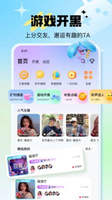 不二开黑是一款“游戏开黑+语音聊天”的综合娱乐 App。功能强大、音质清晰,满足广大游戏玩家 在线实时语音沟通需求。在实现更好的游戏体验的同时,平台还提供了大神带队、娱乐k 歌、语音、交友等丰富的娱乐内容。