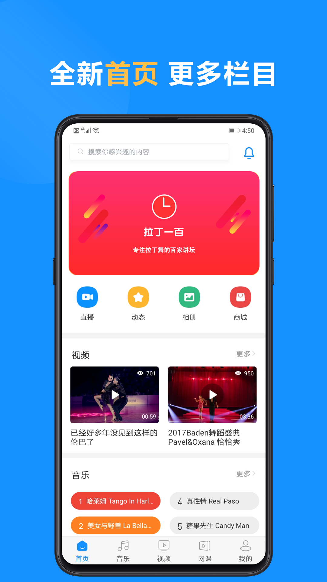 免费资源、收费课程、手机相册视频,加入练习室、秒变教程!借助于10大功能学舞练舞,简单高效,成为完美舞者。 部分功能介绍: 1、针对你的技能水平和练习感受,自动推荐更合适的练习内容和个性化解决方案,助你学舞练舞简单而高效! 2、全程提醒激励你完成每周小目标、掌握镜面/慢放/同屏对比/节拍口令等十大功能,助你学舞练舞简单而高效! 3、在这里,你将有很多伙伴: 练习室同学们,和你一起学习、群内交流, 课程的老师们,为你答疑解惑、点评指导, 中舞网小助手,教会你使用学舞练舞功能, 系统智能提醒,循序渐进,坚持就能成功! 中舞网,专注研发舞蹈教学和舞蹈行业APP十多年。 中舞网,你的舞蹈学习成长平台,为你的舞蹈成长永不停歇! ——舞种任你选—— 中国舞,古典舞,民族舞,爵士舞,芭蕾舞,拉丁舞,摩登舞,肚皮舞,广场舞,国标舞,现代舞,当代舞,幼儿舞蹈,少儿舞蹈,儿童舞蹈,减肥舞蹈,健身舞蹈,踢踏舞,钢管舞,交谊舞,流行舞,流行热舞,莎莎舞,韩舞,鬼步舞,手势舞,手指舞,宅舞,啦啦操舞,瘦身舞蹈,形体舞,排舞,朝鲜舞,印度舞,傣族舞,新疆舞,蒙古舞,藏族舞,汉唐舞,敦煌舞,健美操,健身操,恰恰,伦巴舞,牛仔舞,斗牛舞,桑巴舞,华尔兹舞,维也纳华尔兹,狐步舞,快步舞,探戈舞,体育舞蹈,国际标准舞,民间舞,酒吧领舞,街舞,包括:Hiphop,Popping机械舞,Breaking霹雳舞,Locking锁舞,UrbanDance编舞,Waacking甩手舞,雷鬼Reggae,House,MTV Dance,MTV舞蹈 ——想要就会有—— 无论独舞,单人舞,双人舞,三人舞,群舞,齐舞,原创编舞... 还是舞蹈基本功,毯子功,技术技巧,舞蹈组合,舞蹈编排,舞蹈演出,舞蹈表演,舞蹈节目,舞剧,舞蹈课程,舞蹈培训,舞蹈比赛,舞蹈考级,舞蹈艺考,舞蹈音乐,舞蹈鞋,舞蹈服饰,舞蹈用品... 或者来自:腾讯视频,唱吧,抖音,小鹅通,快手,微视,桃李杯,荷花奖... 或者你是舞蹈大众、业余、专业、进阶、进修、初级、中级、高级人群... ——功能超想象—— 镜面,镜像,慢放,慢速播放,AB区间循环播放,视频提取音频,直播,课程分解教学,热门,流行,零基础,视频课,直播课,线下课,你轻松学会。