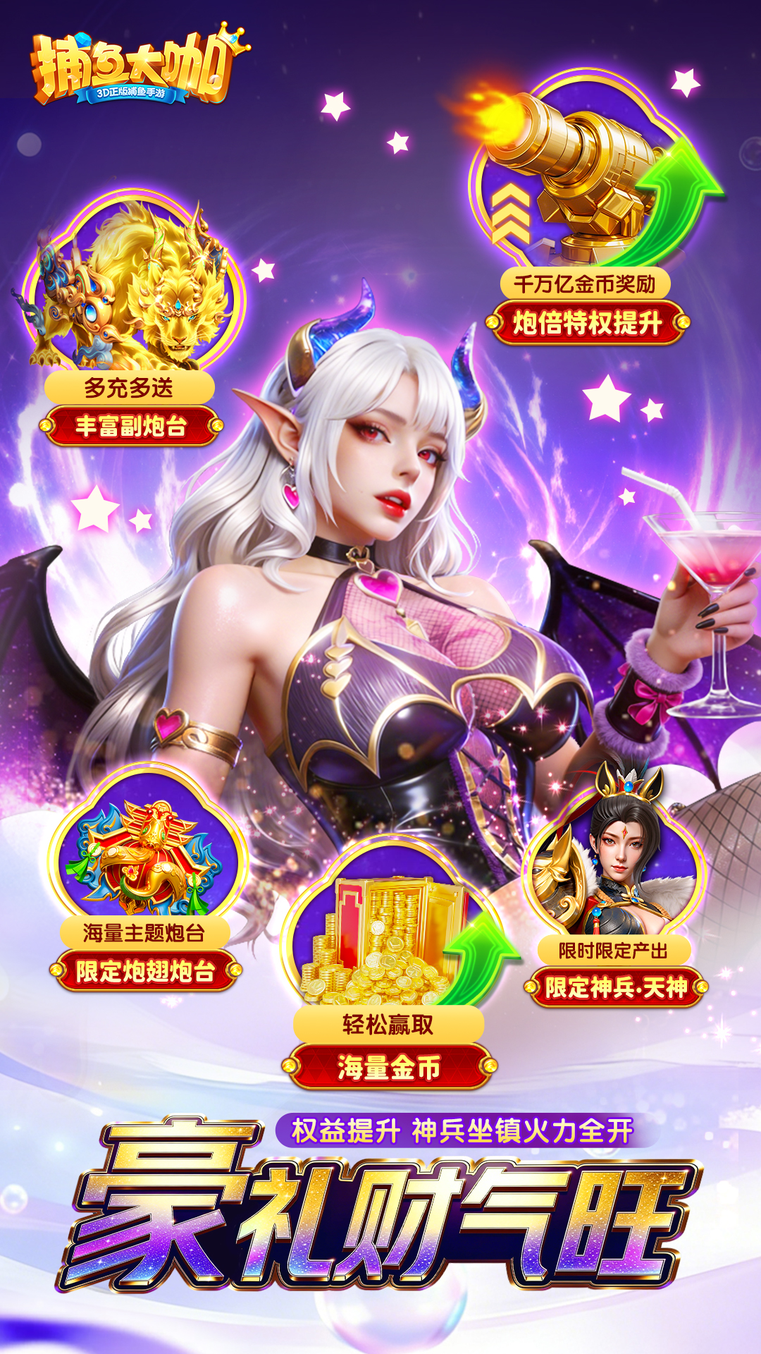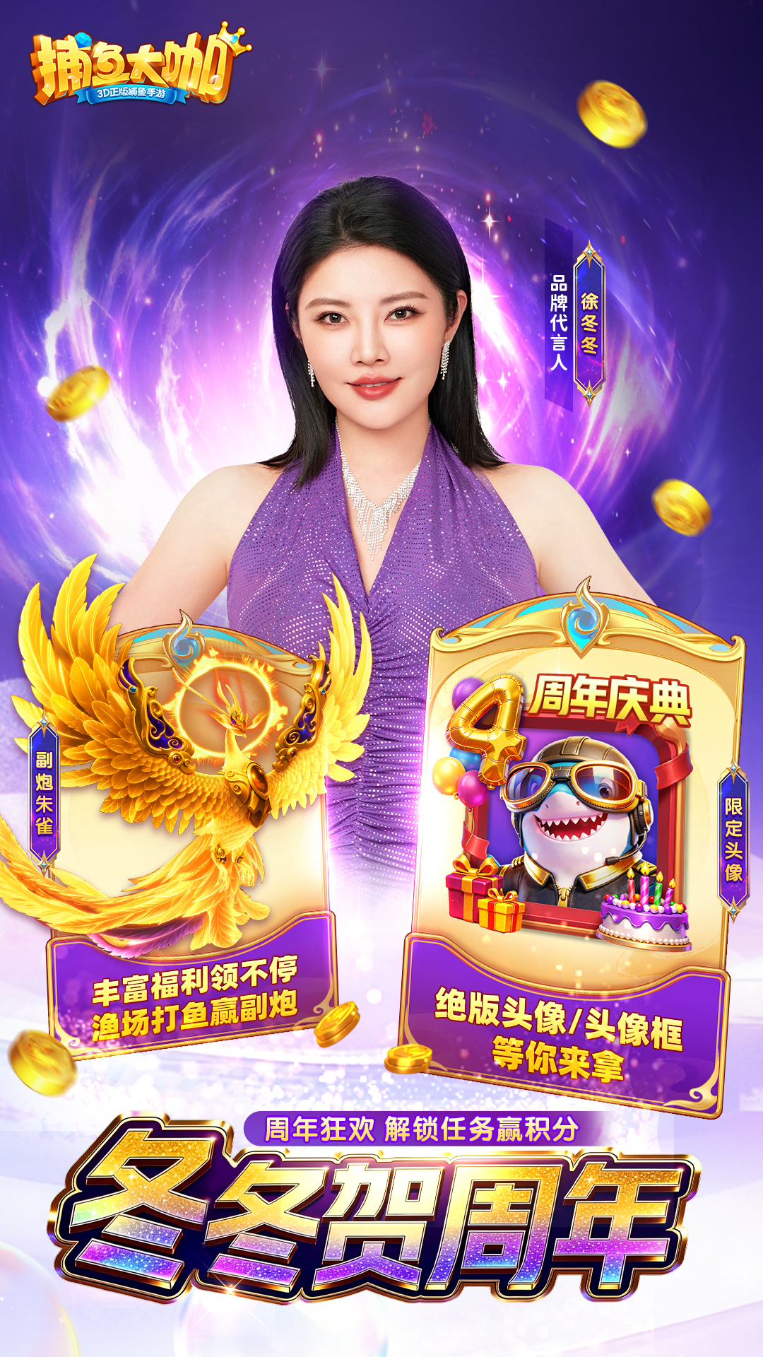 【徐冬冬礼包】:XDD666、XDD777、XDD888、XDD999<br>【免费礼包】兑换码:DK999,DK777,DK666<br>【兑换方式】打开游戏-右上角精彩活动-兑换码-每个玩家限2次不同号码的兑换机会<br><br>专业团队,史诗巨制,《捕鱼大咖》全新来袭!<br><br>亲爱的捕鱼玩家们,欢迎来到《捕鱼大咖》!在这里您将置身海底世界,感受真实逼真的渔场、丰富多彩的鱼种、刺激的深海冒险,体验捕鱼乐趣!快来畅享万炮齐发满屏爆金的捕鱼盛宴吧!<br><br>【3D画面,震撼场景】<br>3D真实的次时代画面表现,专业团队倾力打造,不仅仅是捕鱼,而是置身其中,身临其境!<br>【远古神兽,震撼出场】<br>婀娜多姿的人鱼公主,守护宝藏的远古巨龙,海洋深处的泰坦巨猿,载满财宝的幽灵宝船,探索伟大的航路,还有更多神秘鱼种等你来一起发现!<br>【尊贵特权,免费享受】<br>升级就送VIP,尊贵特权免费享受,真正的不花钱玩到爽,不花钱爽到翻!<br>【超多福利,倾情放送】<br>登录就送海量金币,3日好礼、鸿运抽奖、深海寻宝,多重福利领不停!<br>【超炫炮台,绚丽翅膀】<br>劲爽炫酷炮台和华丽绚烂翅膀,让您在海底的捕鱼世界也能炫出个性,惊艳四座!<br>【原味街机,五十万炮】<br>还原经典街机的捕鱼玩法,轻松直升50万炮,满屏爆金爽翻天!<br>更多精彩,尽在《捕鱼大咖》!<br>【特别声明】<br>本游戏致力于为成年人(18+)提供良好的游戏体验,游戏内不涉及任何赌博、现金交易和兑换实体奖品内容,在游戏内获得成功的体验,不代表现实生活中的成功。<br><br>本游戏不涉及赌博,故玩家无任何机会赢取现金或实体奖品。