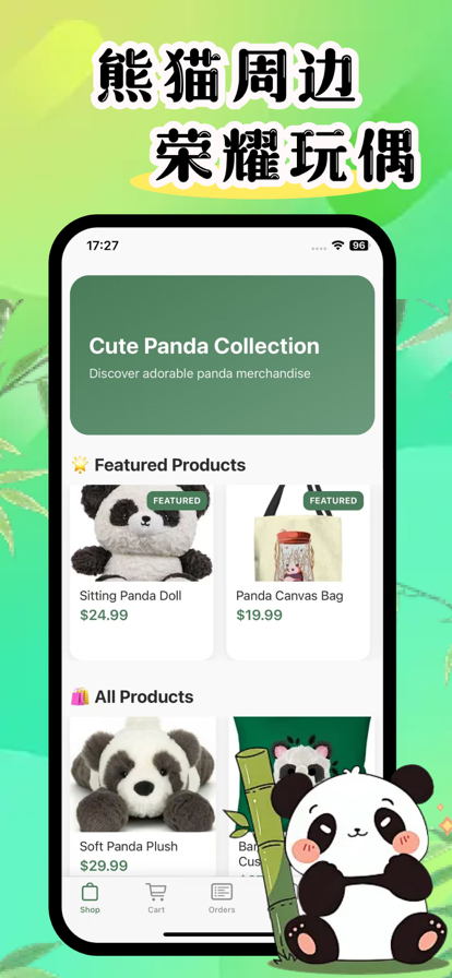 Here you'll find a curated collection of all things panda-themed: plush sitting panda dolls, playful panda canvas bags, cuddly panda pillows, and more—spanning decorative items, daily essentials, and beyond. Browse featured picks or explore all categories to view detailed product information (like materials and target audience). Add your favorite items to cart with a single tap for effortless shopping. The app features a clean, minimalist interface with clear, intuitive navigation, allowing panda enthusiasts to quickly find their perfect cuddly companion. It's a thoughtful choice for personal keepsakes or gifts for friends and family, suitable for panda lovers of all ages.