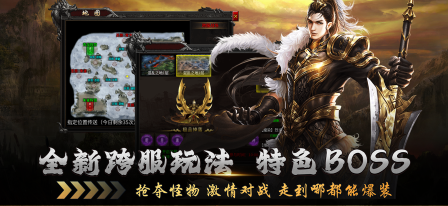 抢BOSS爆极品,强者之路骁勇绽放! 精彩养成玩法,多重战场任你纵横! 平衡数值策略为王,操作决胜分毫之间! 海量活动对决全开,热血激战随时点燃! 核心玩法: 装备合成:强力装备持续二合一,超高战力所向披靡! 跨服激战:巅峰强者跨服对决,问鼎至尊,加冕王者! 副本奇遇:秘境寻珍,赢取极品宝材,铸就无双霸业!
