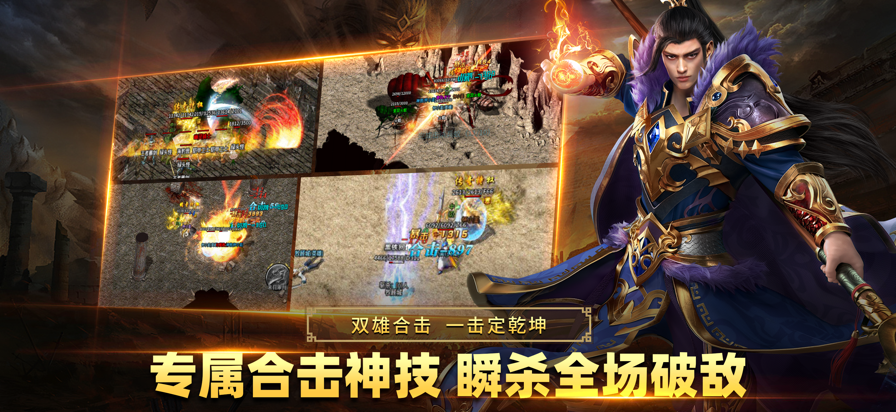 【还原经典,重返年少】 对很多人来说,最经典的玩法,还是装备合成和热血PK,一切都是难忘的。不变的是那份情怀。 秉承初心精心为大家打造一个全新的中华上古神话世界,以超越经典,尊重情怀为宗旨。全力打造更美画面,更多福利,更合理设定,更流畅操作,更稳定千人同屏乱战。 归来吧少年!再次谱写属于自己的英雄史歌,再续曾经的辉煌霸业! 【打怪掉落装备,极品全靠合成】 在游戏中,不卖任何装备,装备全部靠打怪打boss。真正的极品装备全是玩家通过装备合成合出来的。 研发团队还对技能进行了优化,真正的做到职业平衡,只要你的操作够秀,什么对手都有可能击败。 【自由交易,离线摆摊】 大家都知道,现在很多手游为了赚钱,都关闭了交易,但我们秉承的就是不忘初心,游戏研发团队郑重承诺,游戏中所有在野外杀怪掉落的道具可以自由交易! 而且研发团队还对摆摊进行了优化,为了简化操作,节约大家的时间,手游中的摆摊是不仅使用的是分身,让你做到一边杀怪,一边摆摊,更可以离线摆摊,你下线之后,你的摊位依然在不停的为你创造财富。 【红名爆装,野外夺宝】 游戏不仅为喜欢PK的玩家提供大量PK玩法,杀人爆装的野外boss争夺、同氏族兄弟一起参与领地争抢、千人同屏的炎黄战场和大规模城战。 而且为了保护新手玩家,游戏还设计了不会被抢夺的个人BOSS玩法,以及杀人会红名的惩罚,击杀红名玩家可以100%掉落装备。 【千人同屏,争夺霸主】 研发团队精心打造了城战玩法,只要你加入氏族,便可以参战。不仅可以争夺三大主城城主之位,更可以选择“我都要!”,一统天下成为天下霸主! 成为天下霸主,不仅可以尊享独一无二的霸气坐骑,更可以每日收取四大主城的收税,可以说是奖励丰厚和权利遮天。