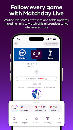 官方英超联赛应用程序免费下载,是您观看全球最受瞩目的足球联赛的必备伴侣。获取快速、权威的英超联赛实时比分、详细统计数据以及每场比赛、每支俱乐部和每位球员的最新资讯。<br><br>使用“比赛日直播”功能实时关注赛事动态,使用“英超联赛助手”功能深入了解比赛,并通过“我的英超联赛”功能打造专属您的观赛体验。管理您的英超梦幻球队,收听英超联赛电台(如有提供),并在历史档案中探索数十年来令人难忘的英超联赛精彩瞬间。<br><br>使用 Matchday Live 关注每场比赛<br><br>• 经核实的实时比分、比赛统计数据和实时积分榜更新<br><br>• 精彩瞬间,实时呈现:进球、阵容、红牌等<br><br>• 提供官方直播链接(如有),让您不错过任何精彩瞬间<br><br>使用 Matchday Stories,不错过任何精彩瞬间<br><br>• 实时呈现来自各个球场的竖屏比赛故事<br><br>• 精彩瞬间、赛后反应和背景信息,一目了然<br><br>• 直达俱乐部和转播商平台,获取更多内容<br><br>使用 myPremierLeague 打造专属体验<br><br>• 选择您喜爱的俱乐部、球员和比赛<br><br>• 根据您的关注点,推送个性化新闻、视频和故事<br><br>• 智能提醒,让您第一时间了解阵容、进球和重要更新<br><br>随时随地畅玩 Fantasy Premier League<br><br>• 随时随地全面管理您的 Fantasy Premier League 阵容<br><br>• 在关注足球比分和统计数据的同时,追踪 FPL 积分<br><br>• 经典模式、选秀模式和挑战模式,应有尽有<br><br>收听 Premier League Radio 直播<br><br>• 实时比赛解说和分析来自英超联赛各地<br><br>• 无论身在何处,都能聆听英超比赛日的精彩声音*<br><br>*受地区限制;部分赛事直播在英国和爱尔兰无法收看。<br><br>探索英超联赛档案库<br><br>• 重温30余年的英超足球历史<br><br>• 数千场经典比赛的视频集锦、统计数据和球衣<br><br>• 重温从1992年至今的标志性进球、宿敌对决和冠军争夺战<br><br>探索俱乐部、球员和统计数据<br><br>• 每位曾在英超联赛中亮相的俱乐部和球员的深度档案<br><br>• 涵盖多项赛事的赛程、结果和积分榜<br><br>• 丰富的足球统计数据,助您更深入地了解比赛<br><br>无论您是查看实时比分、追踪梦幻积分、收听比赛日直播还是重温经典瞬间,英超联赛应用程序都能让您与比赛更加紧密相连——赛季的每一天。