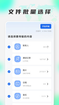 一款集手机克隆、文件隔空投送于一身的全能型APP!拥有本款APP,即可为您解决多个使用需求! 为您解决手机换新之后,迁移原手机上资料到新手机的功能,比如:通讯录、照片、视频、图片、音频等,多个迁移功能,视频照片全部原文件传输,不改变原文件质量,为您更换手机提供便捷,不需要再单个复制,非常的便捷! 用换机克隆助手,从安卓设备转移数据变得简单!