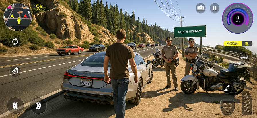 这是 2025 年游戏中最好的汽车驾驶模拟器,具有逼真的物理引擎。 当游戏开始时,您控制第三人称角色,并且您需要去一辆车才能有车辆驾驶。