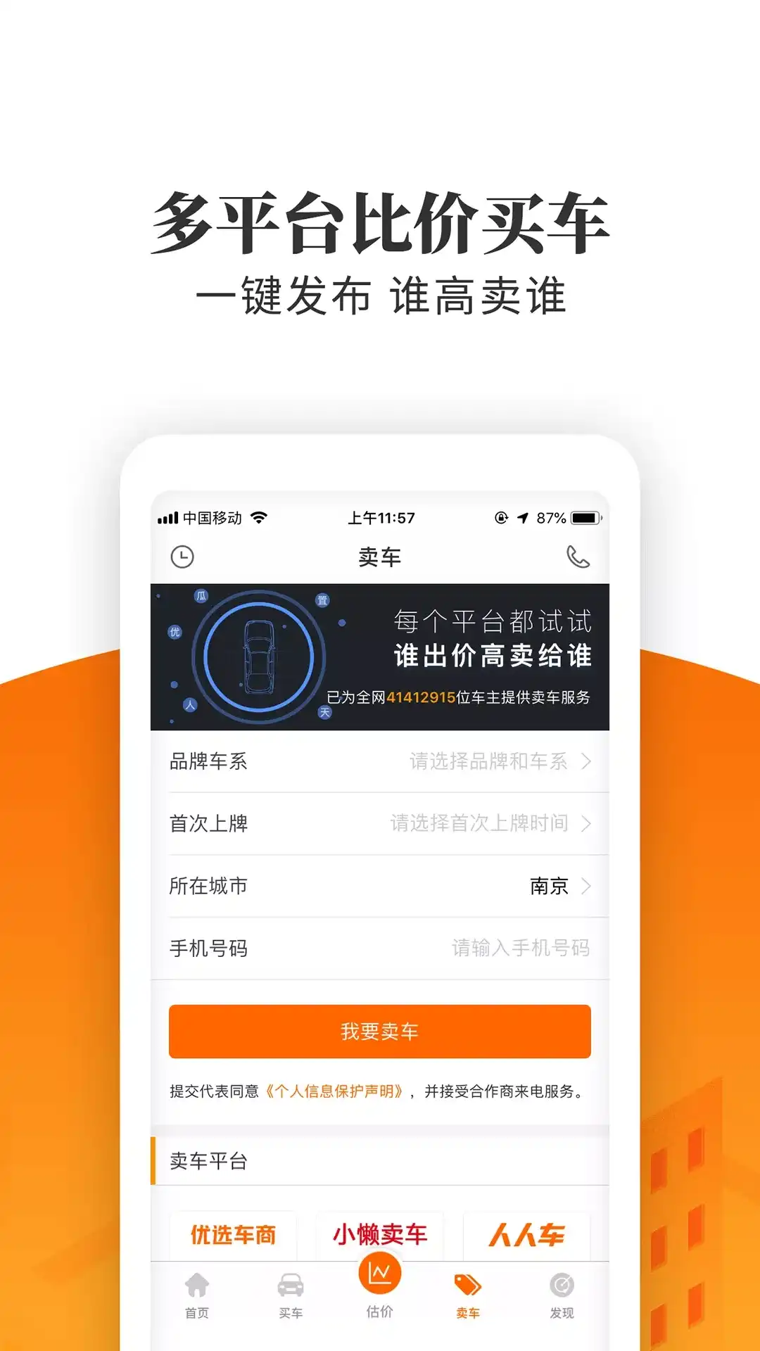 二手车之家-1亿用户选择的二手车买卖平台,为用户提供买车、卖车、估值等服务,是汽车之家旗下专业的二手车全业务交易平台! --五大亮点 买卖便捷-- 【海量车源 真实车况】 每天50万+真实在售车源,覆盖多品牌、多车型,全国400多个城市均有在售!车况对比一目了然,多维度对比同城、全国同款车源,坚决不买贵! 【惠享不停,礼遇不断】 每天都有秒杀车源,每天都有福利活动,现在购车更有机会返现,最高可达20000元! 【诚信好车,重磅升级】 三重保障用户购车权益,95项专业检测放心车源,三大事故90天回购! 【1秒估值,高价卖车】 基于百万交易数据+市场实时行情,三重核验技术保障估价准确,秒出精准报价! 【以旧换新,补贴不停】 专属管家1对1服务,2小时极速上门,旧车换新一键搞定!省心省力优惠多!