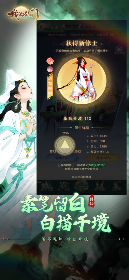 【游戏特色】 ——轮回转世,重振仙门,做掌门,招剑仙,铸法宝,炼灵丹,运转不一样的仙门 我愿化身掌门,以身殉道,扭转乾坤。游戏伊始,妖魔入侵,天地异变,进入仙门世界,重掌蜀山,邂逅李英琼,为使天地浩然,正气长存,经营仙门,潜心悟道,重振蜀山荣光,我辈义不容辞。 天工开物,掌门需习得炼器之道,打造装备,抵抗魔道; 以丹入世,掌门需习得岐黄之道,炼丹洗髓,祛除邪气; 朝现玉虚,掌门需习得参悟之道,参悟仙书,飞升境界; ——招募名宿大能,诛妖灭魔,结仙友,齐飞升! 我愿寻仙访友,广结剑仙,诛妖灭魔。漫漫修仙路,众剑仙鼎力相助,同仇敌忾,诛妖灭魔;开宗立派,共渡仙门修真路;共筑仙门荣光,共修求仙境界,共谱惊世传说。 海量剑仙,冰清玉洁,孤高桀骜,谦谦君子,皆可结交; 易物可得,锻造法宝,炼制丹药,剑仙倾心,即可招募。 ——志同道合,引为仙盟,净魔窟,除妖魔,八方号召除魔卫道 我愿匡扶正义,集结宗派,除魔卫道。历尽凡间副本,修炼飞升境界;勇闯魔界洞窟,无量山、武当仙府、落神绝顶等数十秘境,呼朋唤友,开宗立派,宗派集结,斩妖除魔! 凡间副本,扫荡人间路,战妖魔,收法宝,御灵兽,重塑太平人间; 开宗立派,呼朋唤友,引为仙盟,饲神兽,号八方,重振仙门; 宗派除魔,入魔窟,闯秘境,战妖魔,肃清天地,威震四方; ——利器炼丹,御空斗法,锻法宝,炼妙丹,修仙成道斗法自然 我愿独守蜀山,锻神兵,练仙丹,得道法大成。漫漫修仙路,即便青灯古佛,也不改初心;锻造法宝,铸造神器,炼制仙丹,熬制仙药;以凡人之躯,行神仙之事。 寻仙问药,强身健体,补足气血,助益渡劫; 熔炼法宝,着神兵,执利器,突破战力,睥睨天下; ——灵兽相伴,云游西海,伏灵兽,观望气,探索蜀山万千福报 我愿巡游四海,遍访灵兽,悟御兽之道。灵兽界,御灵兽,九变蛟,吞金鼠,太初灵鳐,灵玉芝马,十数种灵兽相伴,共度修真路。 入灵兽界,养萌宠,产资源,丹药法宝轻松得; 宗门神兽,神佑仙门,气血加成,战力提升,四大神兽得神庇佑; ——互动剧情,剑仙羁绊,解心魔,断仇怨,剑仙互动情感羁绊 我愿历遍九世轮回,探寻蜀山羁绊。探寻飘渺蜀山洞天福地,悟天地之神通大道,结交诸位剑仙,爱恨纠葛,仙门羁绊,一朝得道定乾坤。 个性剑仙,清新可人的李英琼,深夜出没的孤月,给剑仙注入灵魂,拥有自己的人生轨迹; 互动剧情,不同剑仙不同剧情,故事发展自由结局,你的抉择,影响整个宗派; ——逍遥放置,轻松成仙,掘灵山,探福地,甩手掌柜也能修仙 我愿逍遥山水间,快乐自成仙。修仙渡劫,自动除魔,仙门经营,大能养成,装备打造,温养法宝,一起来我的仙门逍遥快活!